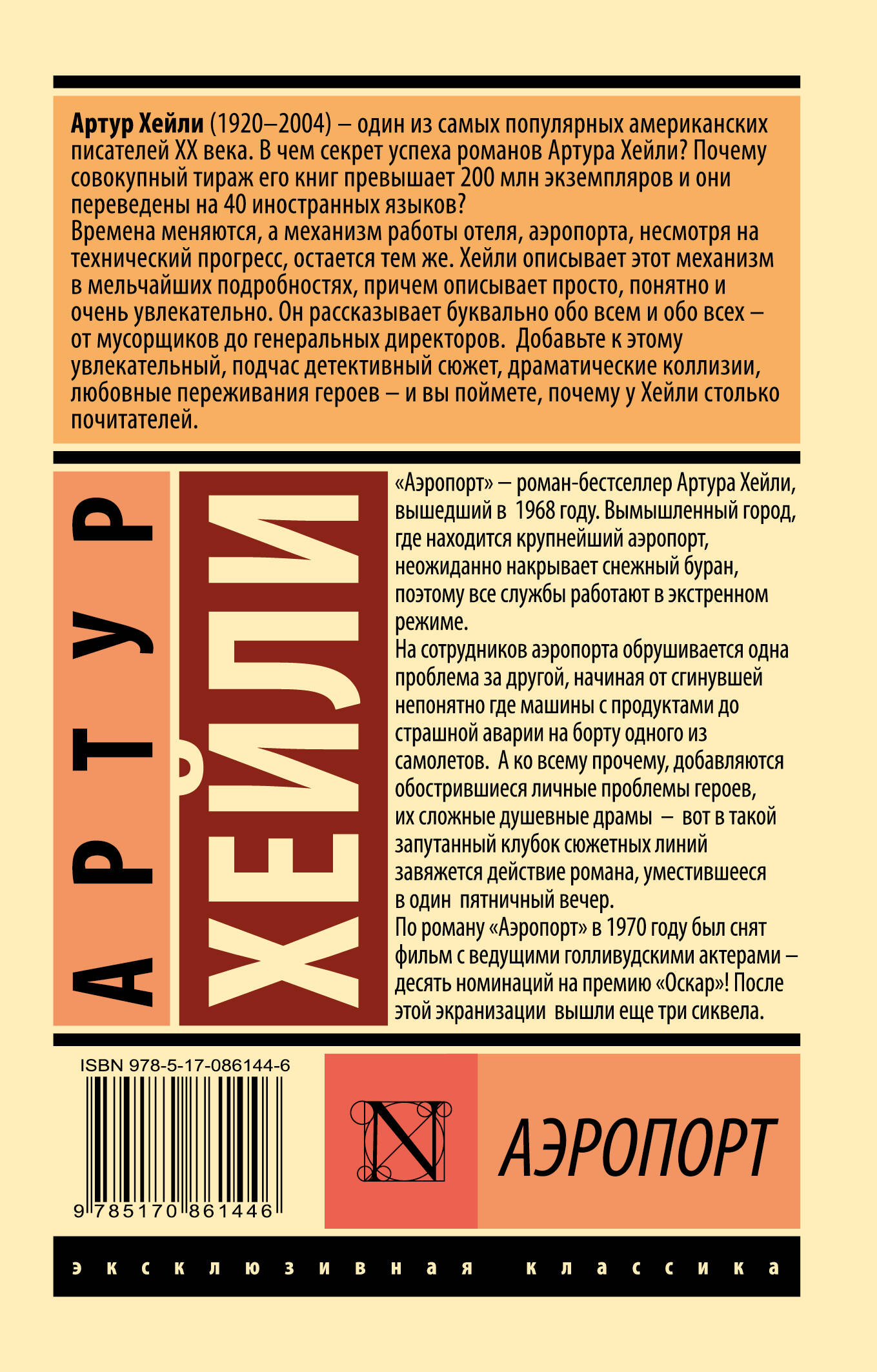 «Аэропорт» – роман-бестселлер Артура Хейли, вышедший в 1968 году. Вымышленный город, в котором находится аэропорт, неожиданно накрывает снежный буран, поэтому все службы работают в экстренном режиме. Сотрудник аэропорта обрушивает одну проблему за другой, начиная с непонятно сгинувшей, где находятся машины с продуктами, до страшной аварии на борту одного из самолетов. А ко всему прочему приводят обострившиеся личные проблемы героев, их сложные душевные драмы – вот в такой запутанный клубок сюжетных линий завяжется действие романа, уместившееся в один пятничный вечер. По роману "Аэропорт" в 1970 году был снят фильм с ведущими голливудскими актерами – десять номинаций на премию "Оскар"! После этой реализации на экране появилось еще три сиквела.
