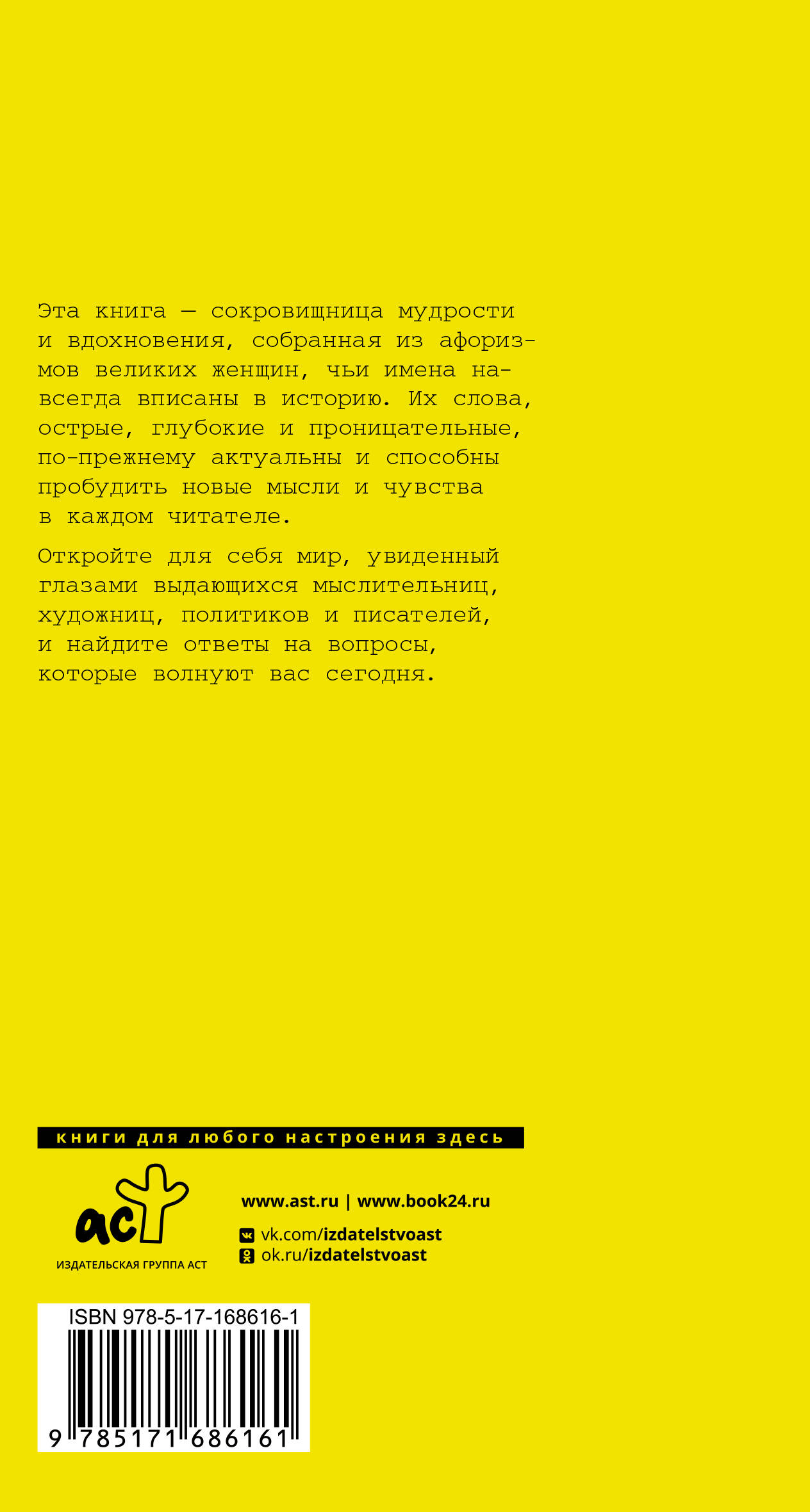 Эта книга — сокровищница мудрости и вдохновения, собранная из афоризмов великих женщин, чьи имена навсегда вписаны в историю. Их слова, острые, глубокие и проницательные, по-прежнему актуальны и способны пробудить новые мысли и чувства в каждом читателе. Откройте для себя мир, увиденный глазами выдающихся мыслительниц, художниц, политиков и писателей, и найдите ответы на вопросы, которые волнуют вас сегодня.