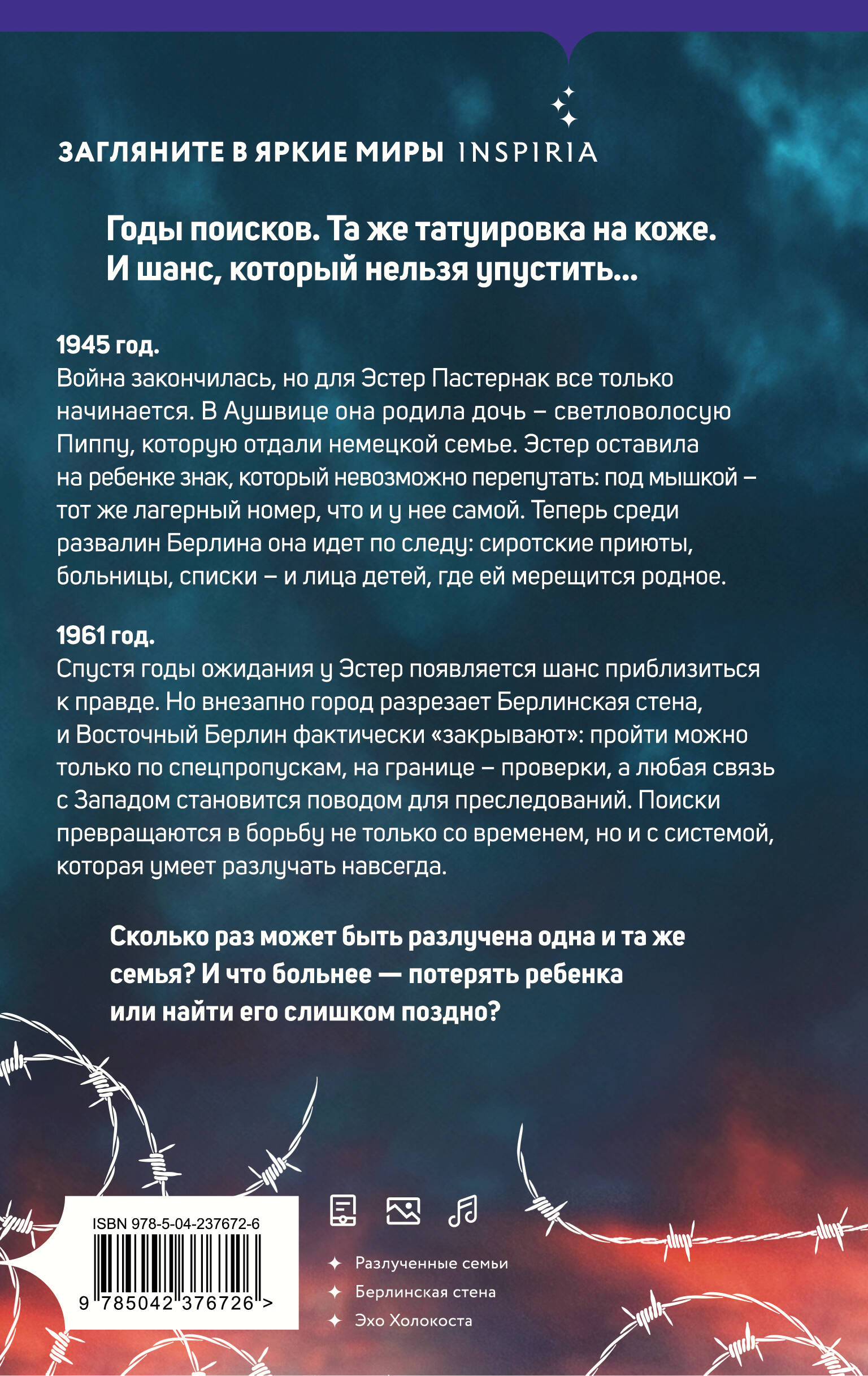 1945 год. Эстер Пастернак выходит из Аушвица живой — и без дочери. Новорожденную Пиппу, светловолосую девочку, отдали немецкой семье. Перед разлукой Эстер успела сделать единственное, что было в ее силах: оставить на теле ребенка свой лагерный номер. Знак, который однажды должен привести ее к дочери. Разрушенный Берлин, бесконечные списки пропавших, приюты, больницы — годы поисков, в которых надежда то вспыхивает, то гаснет. Эстер учится жить дальше, но не перестает ждать.