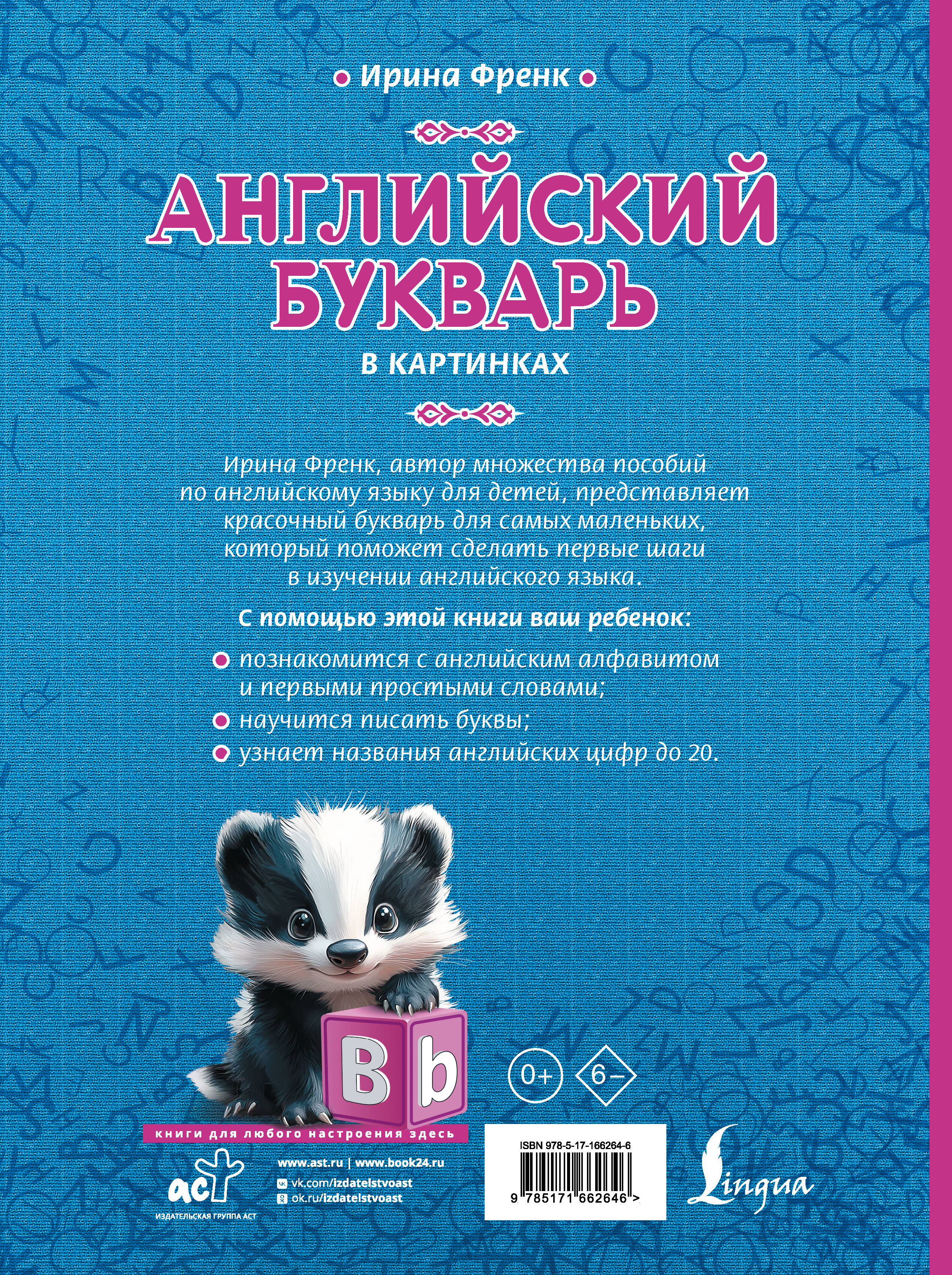Ирина Френк — автор множества пособий по английскому языку для детей — подготовила красочный и увлекательный букварь, который станет отличным помощником на первых этапах изучения английского.