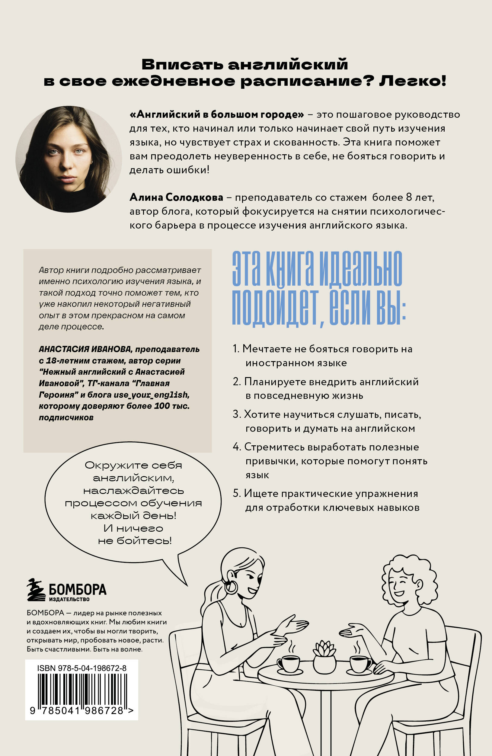 Сформировать, развить и закрепить навыки восприятия английской речи на слух и уверенного говорения поможет именно эта книга. Материал выстроен вокруг реальной жизни и аутентичных источников: вы настраиваете «ухо» на подкастах и видео, отрабатываете произношение и интонацию через shadowing и караоке, говорите по готовым сценариям и в свободном формате, подключаете переписку и дневник, учитесь читать без «боли» и писать понятно. Для мотивации — колесо заданий, бинго целей, игровые упражнения и диалоги с ИИ; для ясности — понятные объяснения грамматики и времен «через ситуацию».
