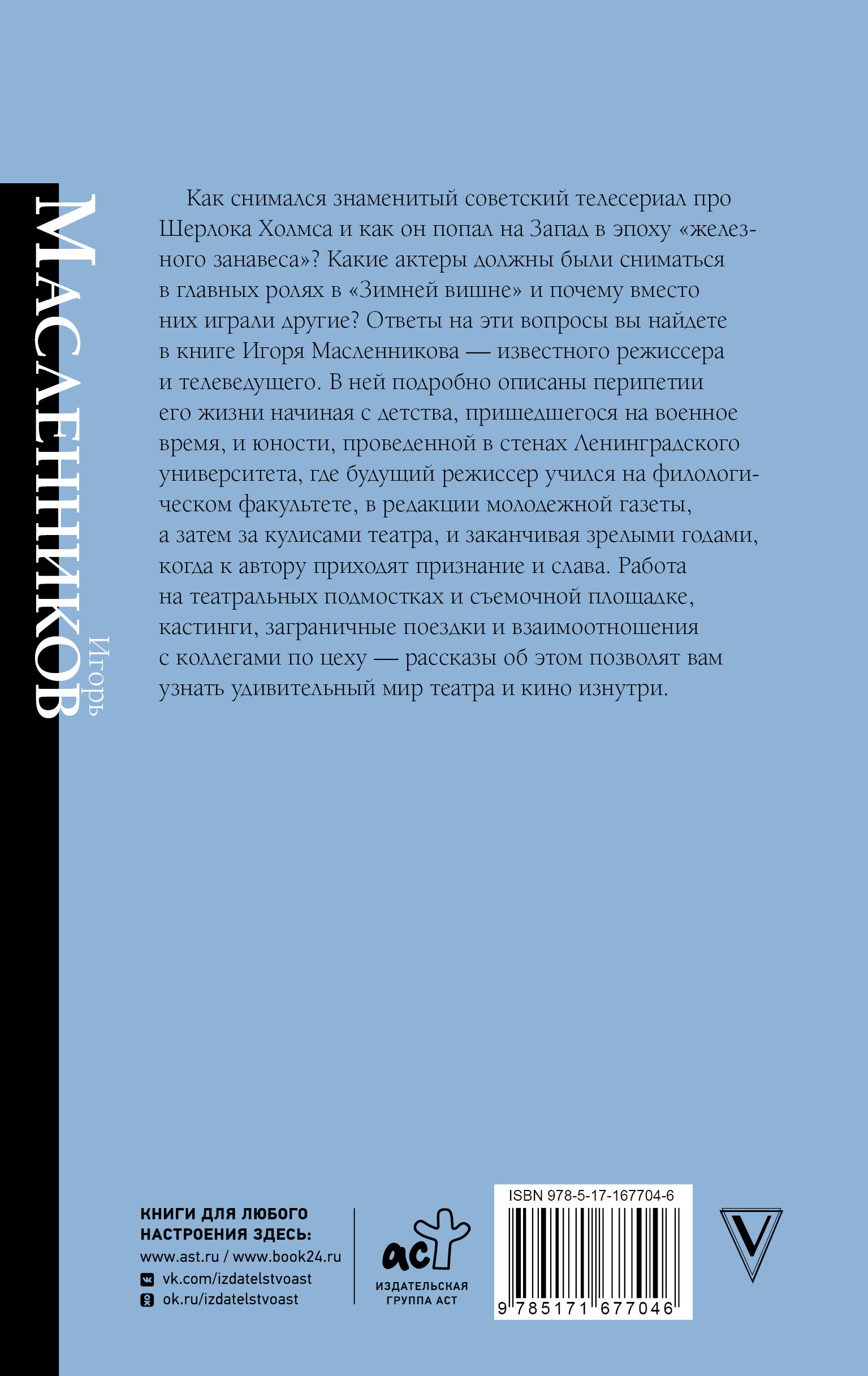 Как снимался знаменитый советский телесериал про Шерлока Холмса и как он попал на Запад в эпоху "железного занавеса"? Какие актеры должны были сниматься в главных ролях в "Зимней вишне" и почему вместо них играли другие? Ответы на эти вопросы вы найдете в книге Игоря Масленникова — известного режиссера и телеведущего. В ней подробно описаны перипетии его жизни начиная с детства, пришедшегося на военное время, и юности, проведенной в стенах Ленинградского университета, где будущий режиссер учился на филологическом факультете, в редакции молодежной газеты, а затем за кулисами театра, и заканчивая зрелыми годами, когда к автору приходят признание и слава. Работа на театральных подмостках и съемочной площадке, кастинги, заграничные поездки и взаимоотношения с коллегами по цеху — рассказы об этом позволят вам узнать удивительный мир театра и кино изнутри.