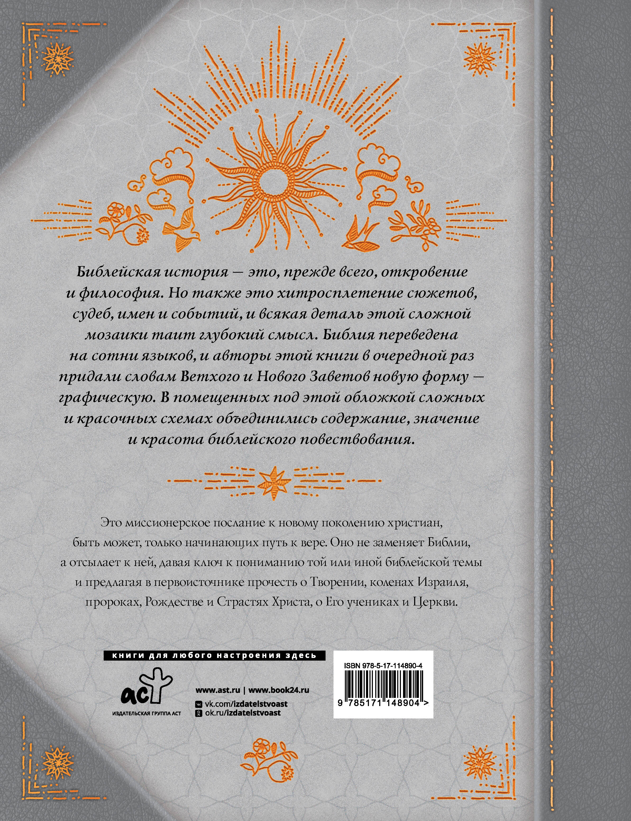 Библия ежегодно возглавляет списки самых читаемых и продаваемых изданий в мире, печатается практически на всех известных нам языках, полна загадок и смыслов, на которых сформировалась огромная часть человеческой культуры. Ее тщательно анализируют, изучают, комментируют и разбирают больше, чем любую другую книгу в истории. Коллекционное издание «Библия в инфографике» включает тексты Ветхого и Нового Заветов в уникальной графической форме. Информативные, красочные схемы, графики и пиктограммы раскрывают для читателя сакральный смысл священной книги – ее образы, символы, сюжет и события. Для тех, кто интересуется историей мировой культуры и религии.