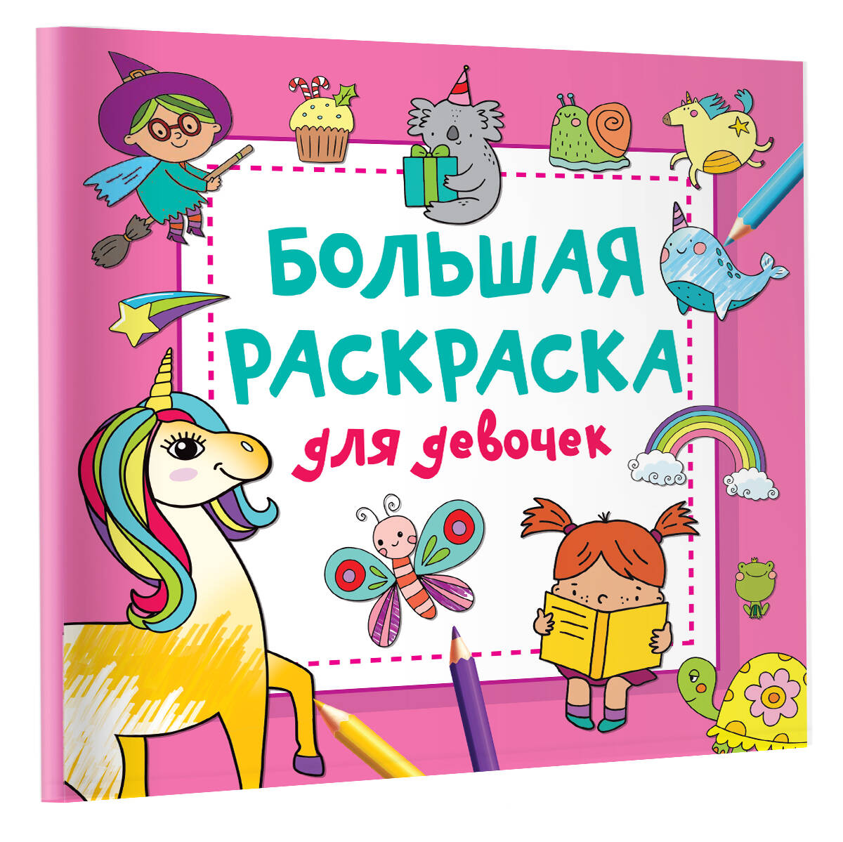 Все дети любят рисовать и раскрашивать весёлые картинки — улитку, цыплёнка, бабочку, принцессу, динозаврика, единорога. Девочкам обязательно понравится серия книг «Большой квадрат: большая раскраска».