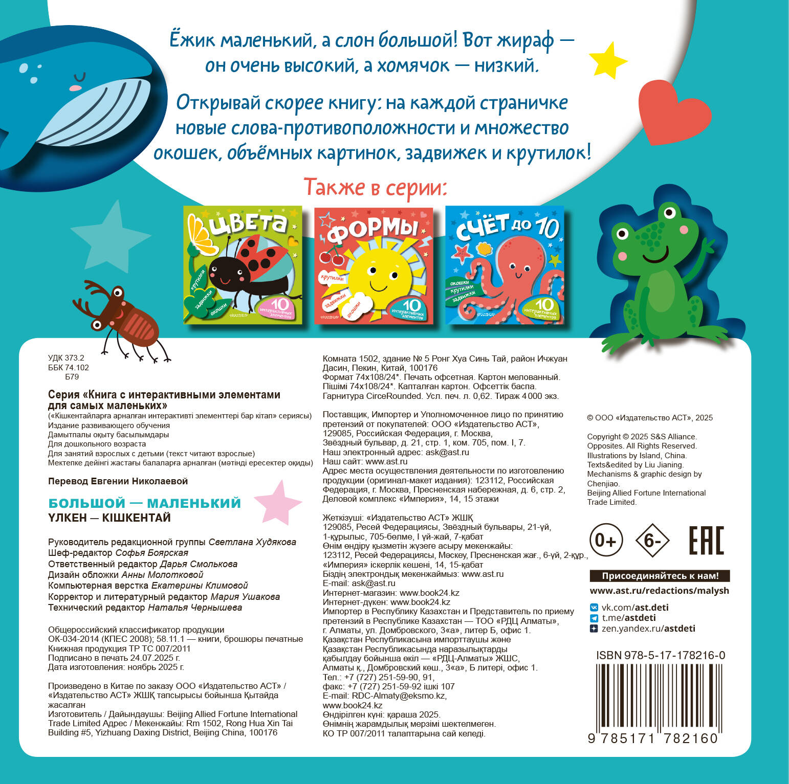 Перед вами удивительная книга с множеством интерактивных элементов: крутилки, задвижки и окошки. Понимать, что же такое противоположности, станет весело и интересно!