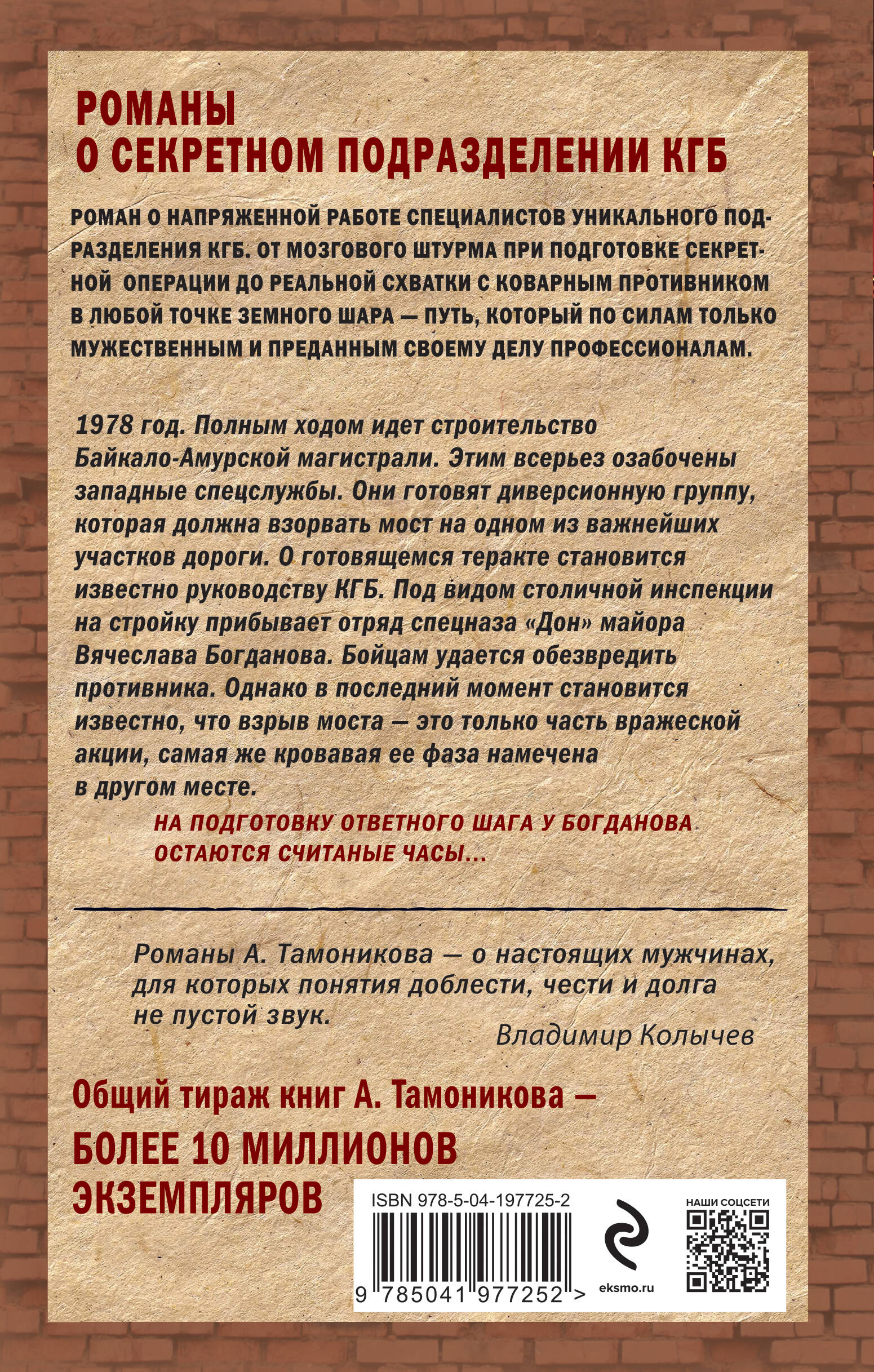 «Романы А. Тамоникова — о настоящих мужчинах, для которых понятия доблести, чести и долга — не пустой звук». — В. Колычев