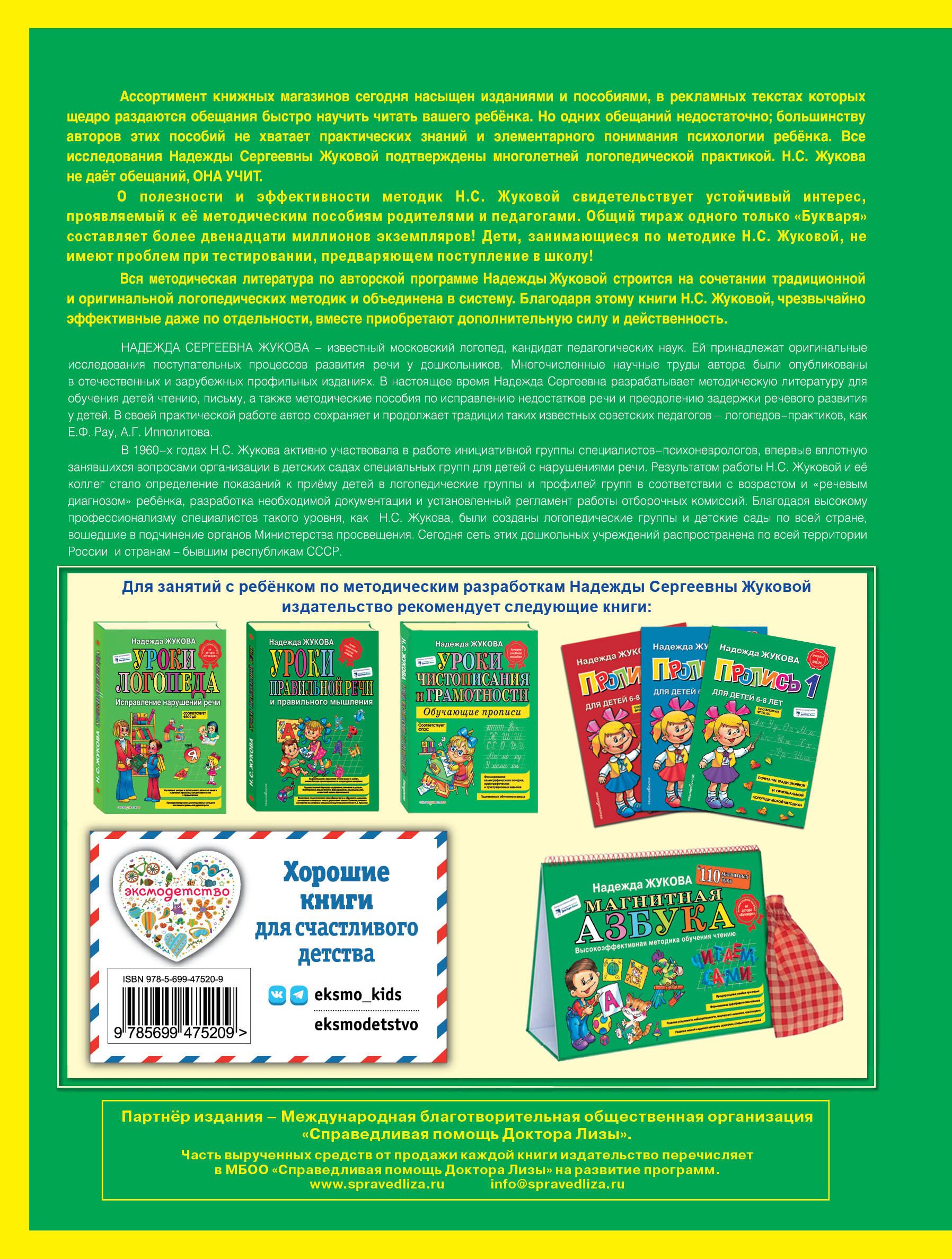 Для правильного обучения ребенка чтению и письму нужна проверенная, прогрессивная методика для детей дошкольников. Жукова Надежда Сергеевна — логопед, кандидат педагогических наук с опытом работы с особенными, «трудными» детьми. В ее методике нет «наукообразности» и «заумности»: она доступна каждому и сочетает в себе обучение грамоте с предупреждением ошибок при письме. Этот «Букварь» помогает быстро и эффективно изучить азбуку и овладеть техникой чтения. Пособия Надежды Жуковой доставляют детям радость и удовольствие в награду за труд и прививают любовь к обучению уже в дошкольном и в школьном возрасте.