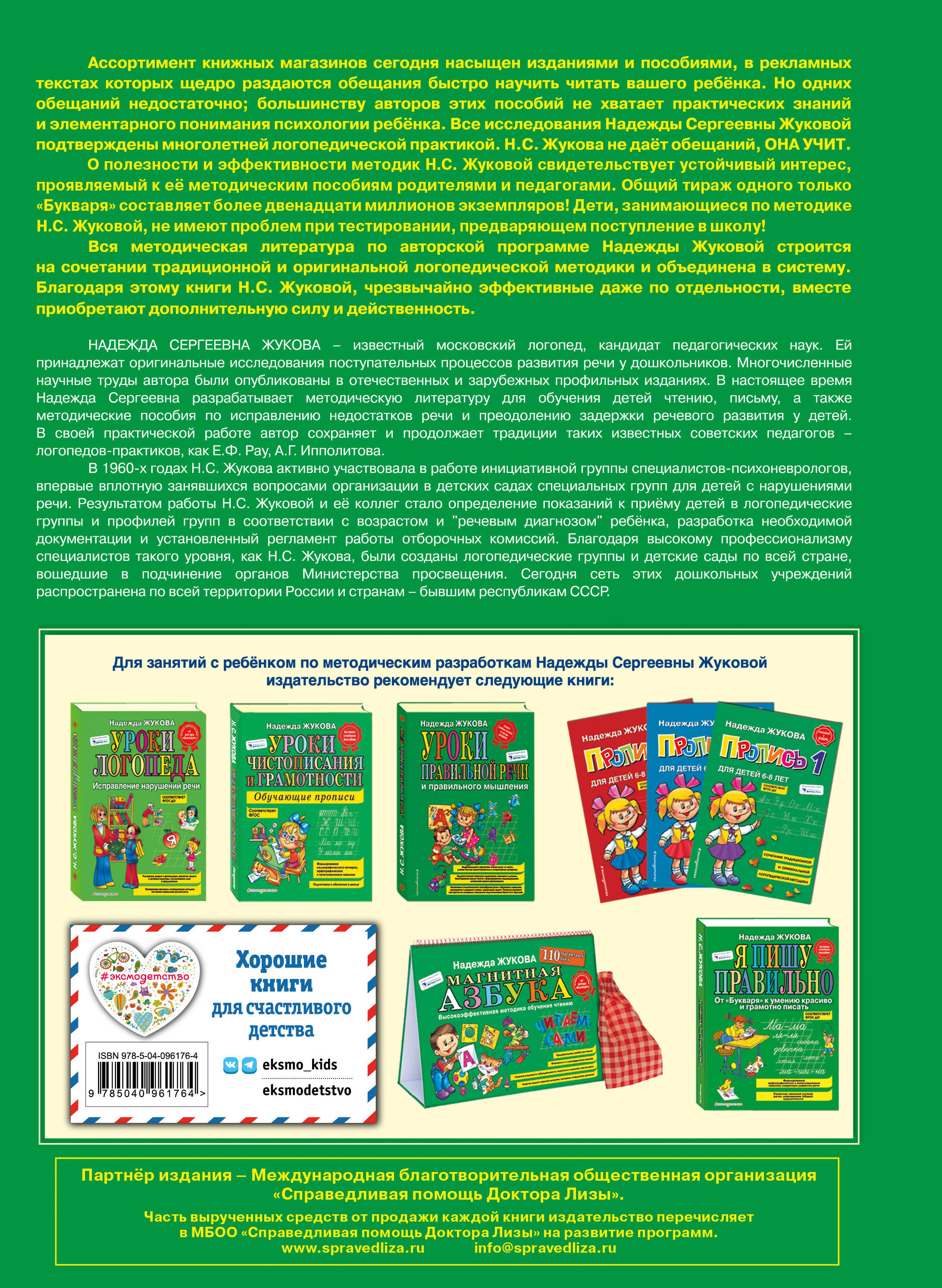 Для правильного обучения ребенка чтению и письму нужна проверенная, прогрессивная методика для детей дошкольников. Жукова Надежда Сергеевна — логопед, кандидат педагогических наук с опытом работы с особенными, «трудными» детьми. В ее методике нет «наукообразности» и «заумности»: она доступна каждому и сочетает в себе обучение грамоте с предупреждением ошибок при письме. Этот «Букварь» помогает быстро и эффективно изучить азбуку и овладеть техникой чтения. Пособия Надежды Жуковой доставляют детям радость и удовольствие в награду за труд и прививают любовь к обучению уже в дошкольном и в школьном возрасте.