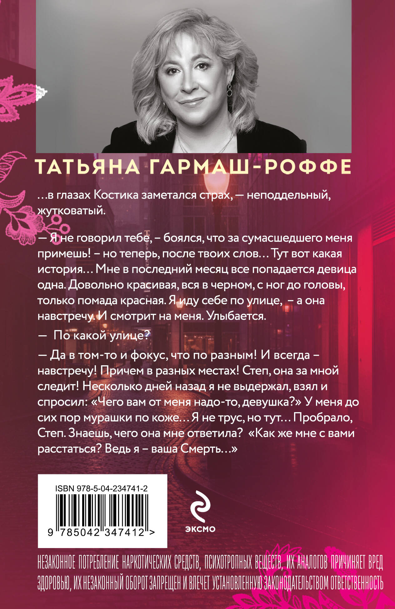 Татьяна Гармаш-Роффе отлично знает, каким должен быть настоящий детектив, и следует в своих романах законам жанра. Театральный критик, она умеет выстраивать диалоги и драматургию чувств. Неординарная личность, она дарит часть своей харизмы персонажам. Непредсказуемость сюжетных поворотов, точность в логике и деталях, психологическая достоверность в описании чувств — таково ИСКУССТВО ДЕТЕКТИВА Татьяны Гармаш-Роффе.