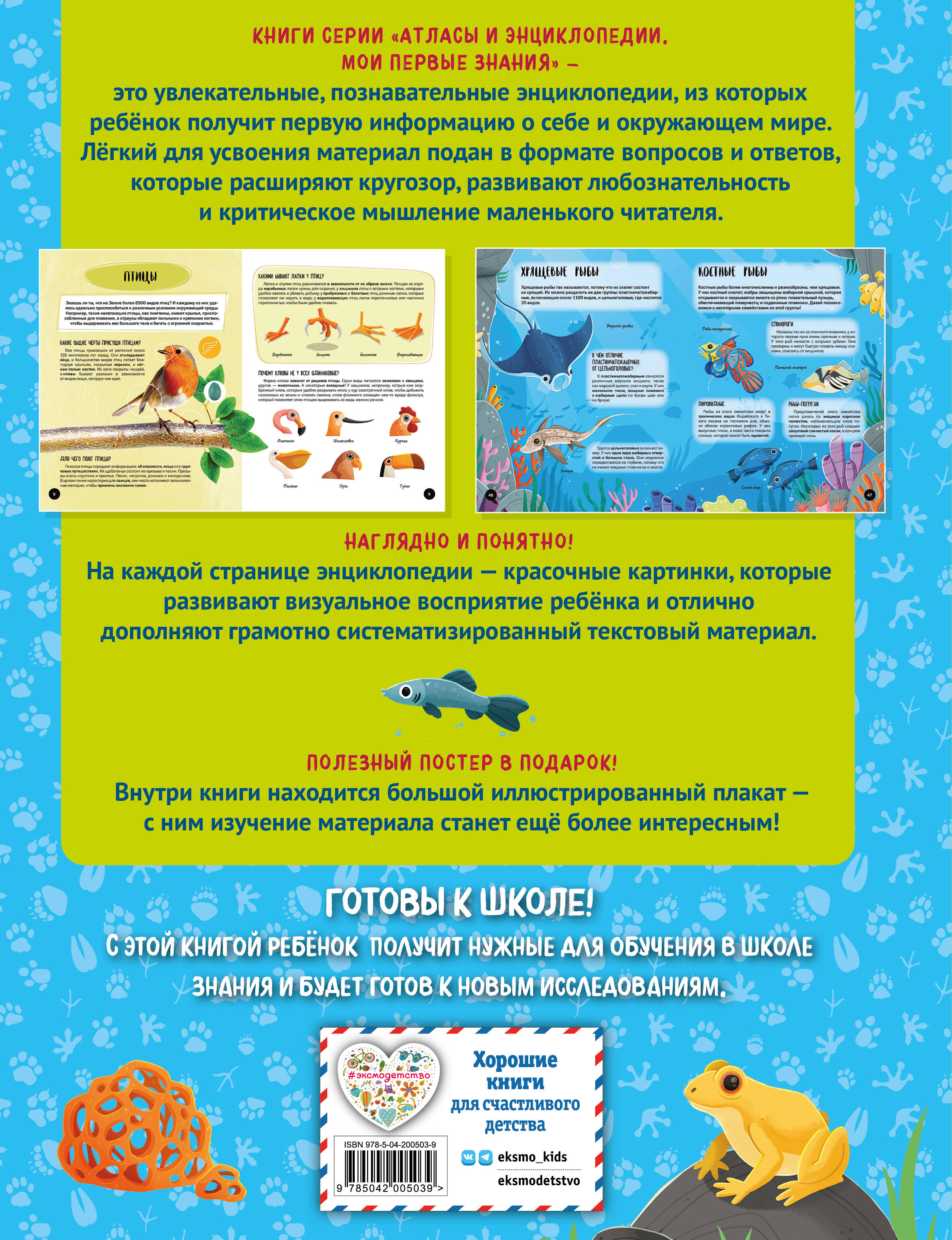 Энциклопедия в формате вопросов и ответов, созданная специально для малышей дошкольного возраста. Вместо длинных статей «научным» языком — наглядные, понятные и увлекательные рассказы о животных плюс большой постер в подарок. Удивительные рекорды животных, их внешние особенности, необычные привычки — всё, что хочется знать маленькому почемучке и о чём он так любит спрашивать! Книга предназначена для совместного семейного досуга и пробуждает интерес ребёнка к самостоятельному чтению.