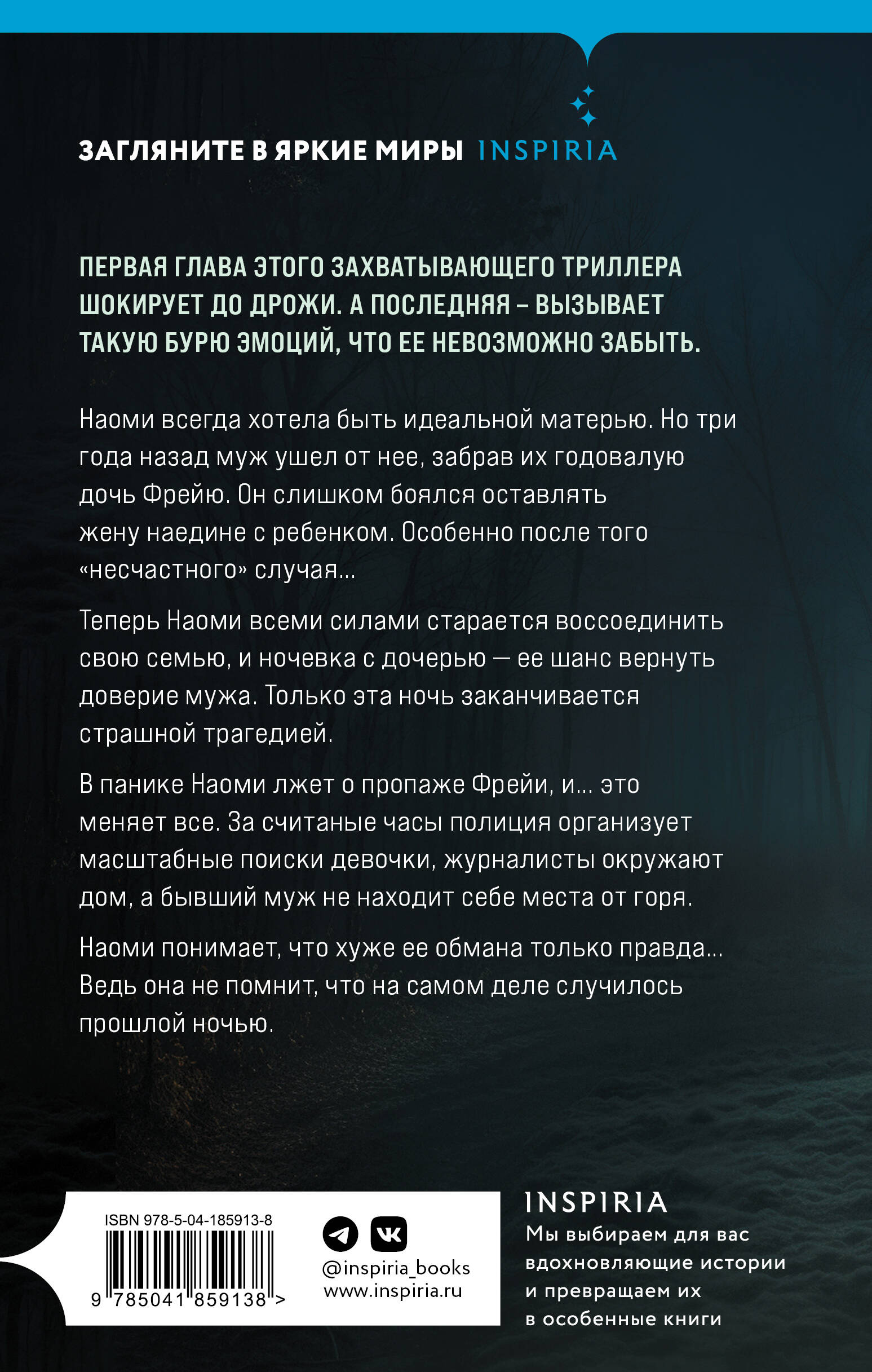 Теперь Наоми всеми силами старается воссоединить свою семью, и ночевка с дочерью — ее шанс вернуть доверие мужа. Только эта ночь заканчивается страшной трагедией. В панике Наоми лжет о пропаже Фрейи, и… это меняет все.