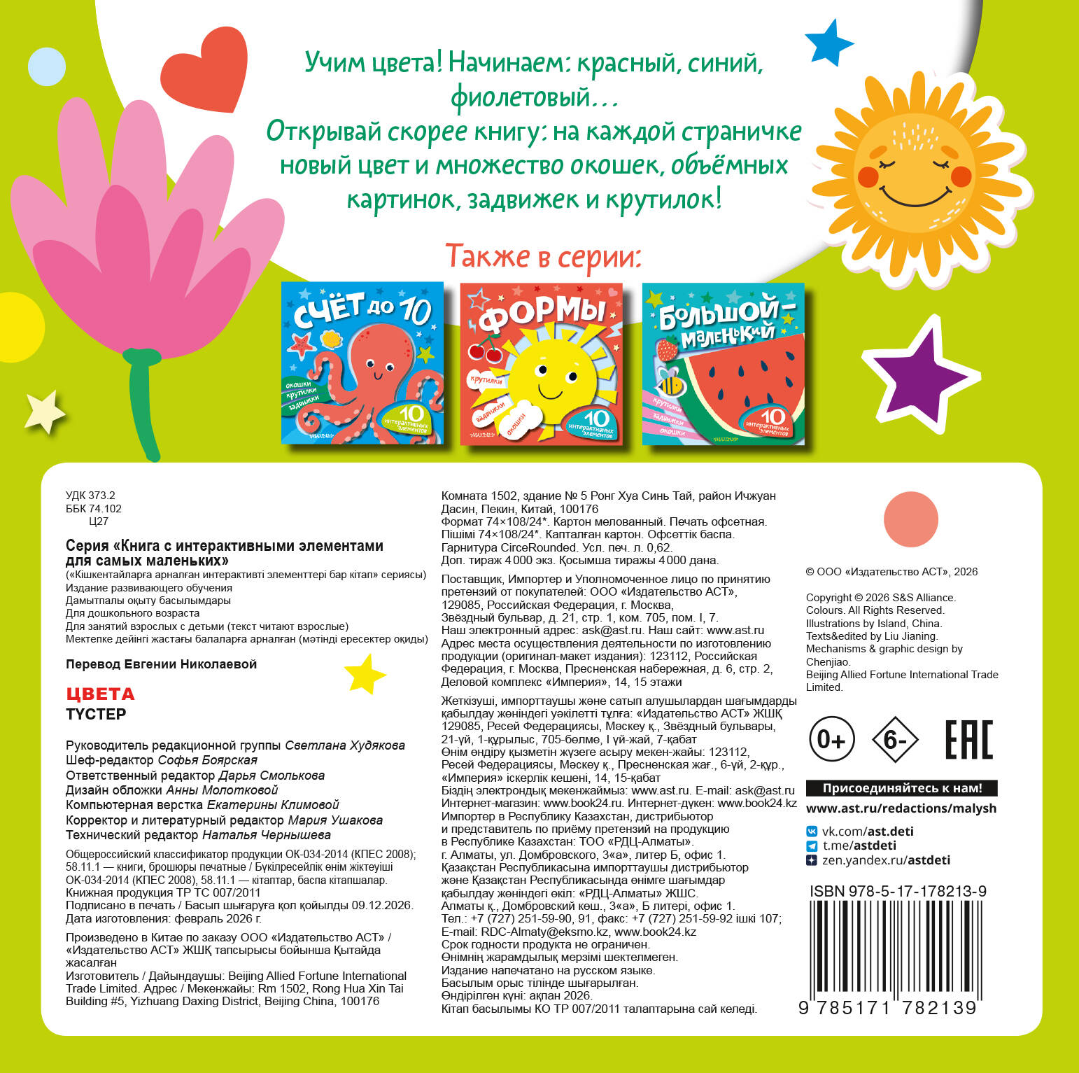 Перед вами удивительная книга с множеством интерактивных элементов: крутилки, задвижки и окошки. Учить цвета станет весело и интересно!