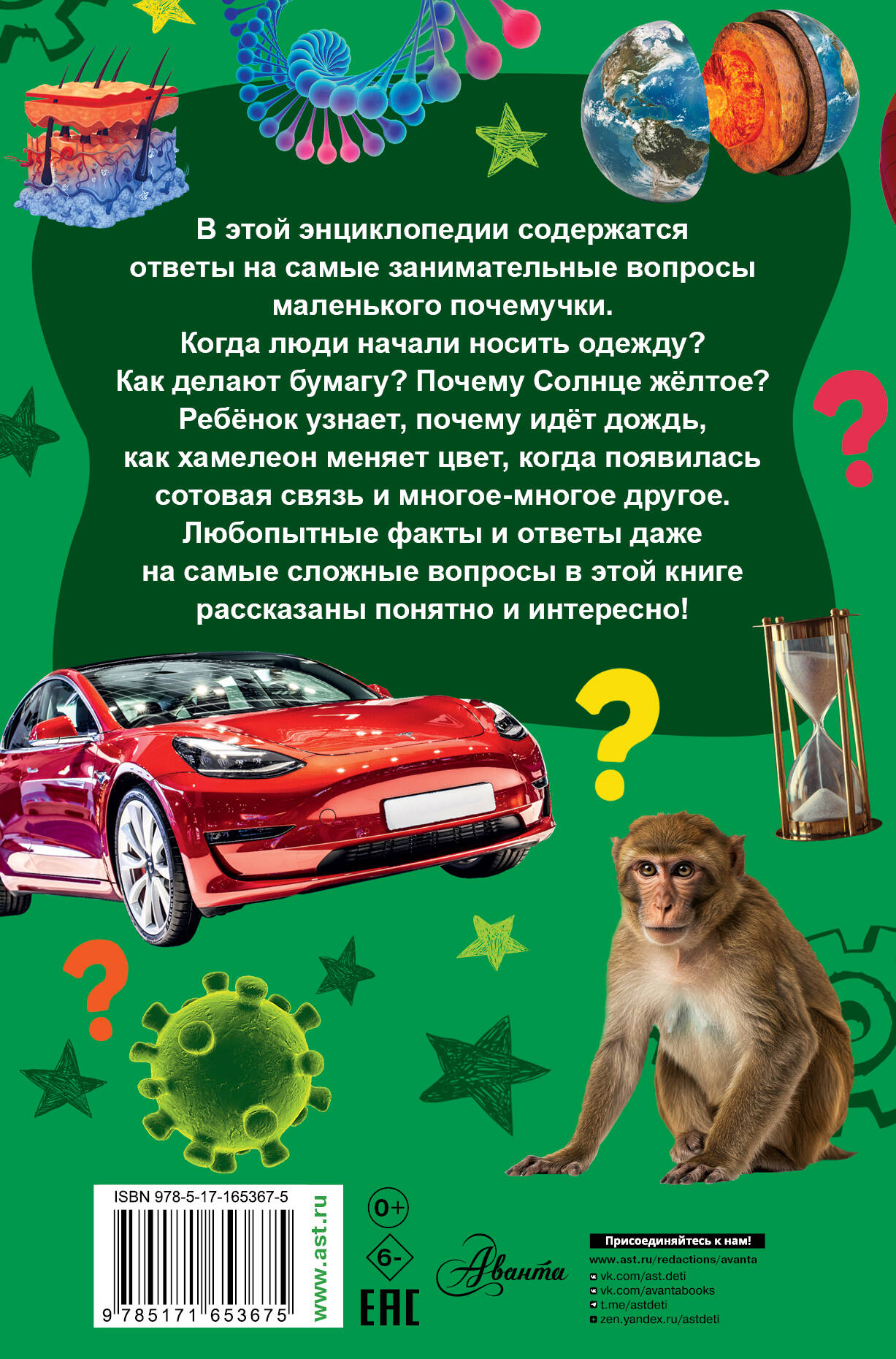 В этой энциклопедии содержатся ответы на самые занимательные вопросы маленького почемучки. Когда люди начали носить одежду? Как делают бумагу? Почему Солнце жёлтое? Ребёнок узнает, почему идёт дождь, как хамелеон меняет цвет, когда появилась сотовая связь и многое-многое другое. Любопытные факты и ответы даже на самые сложные вопросы в этой книге рассказаны понятно и интересно!