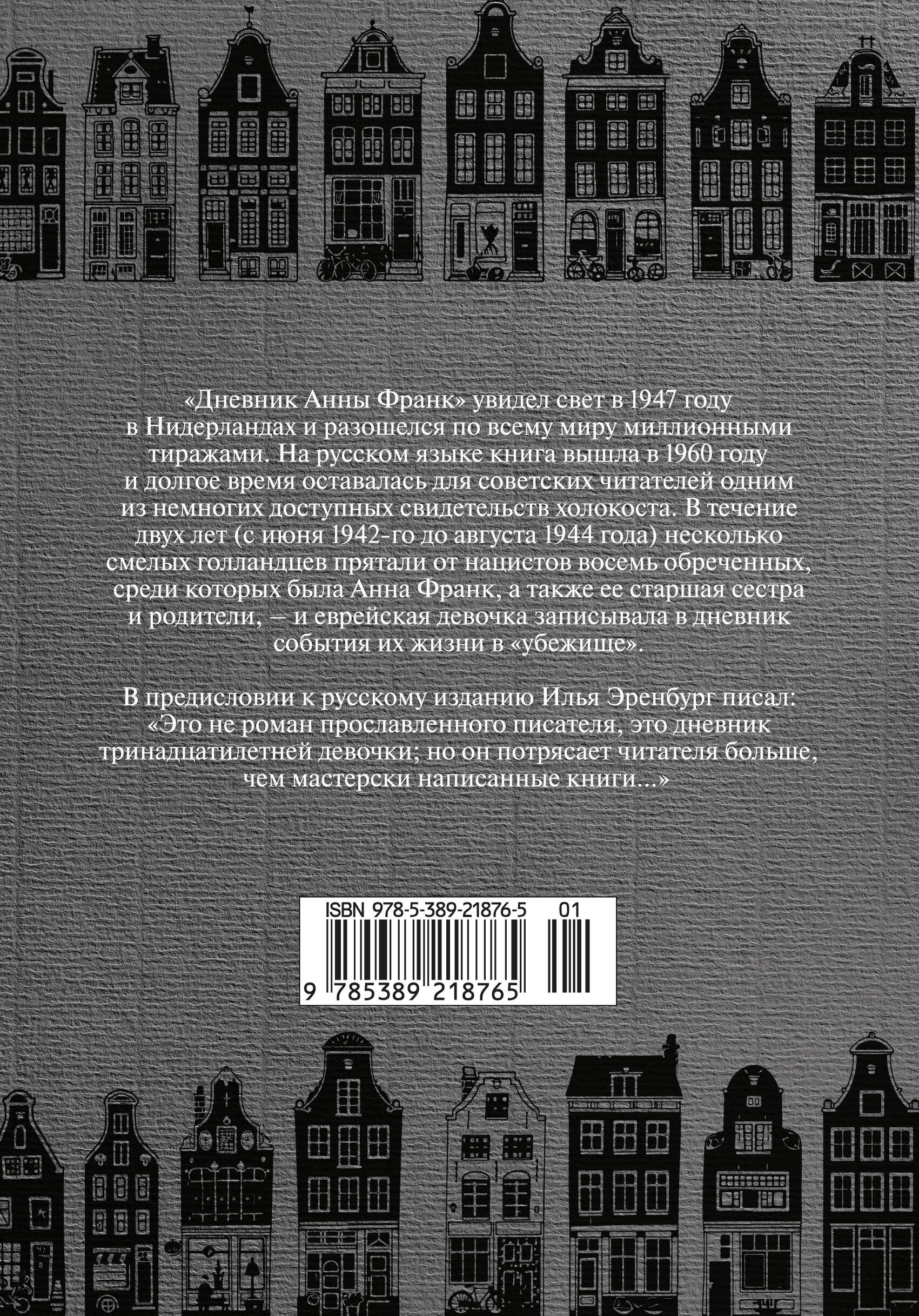 В книге представлен «Дневник Анны Франк» в переводе Риты Райт-Ковалевой с предисловием Ильи Эренбурга к первому русскому изданию 1960 года.