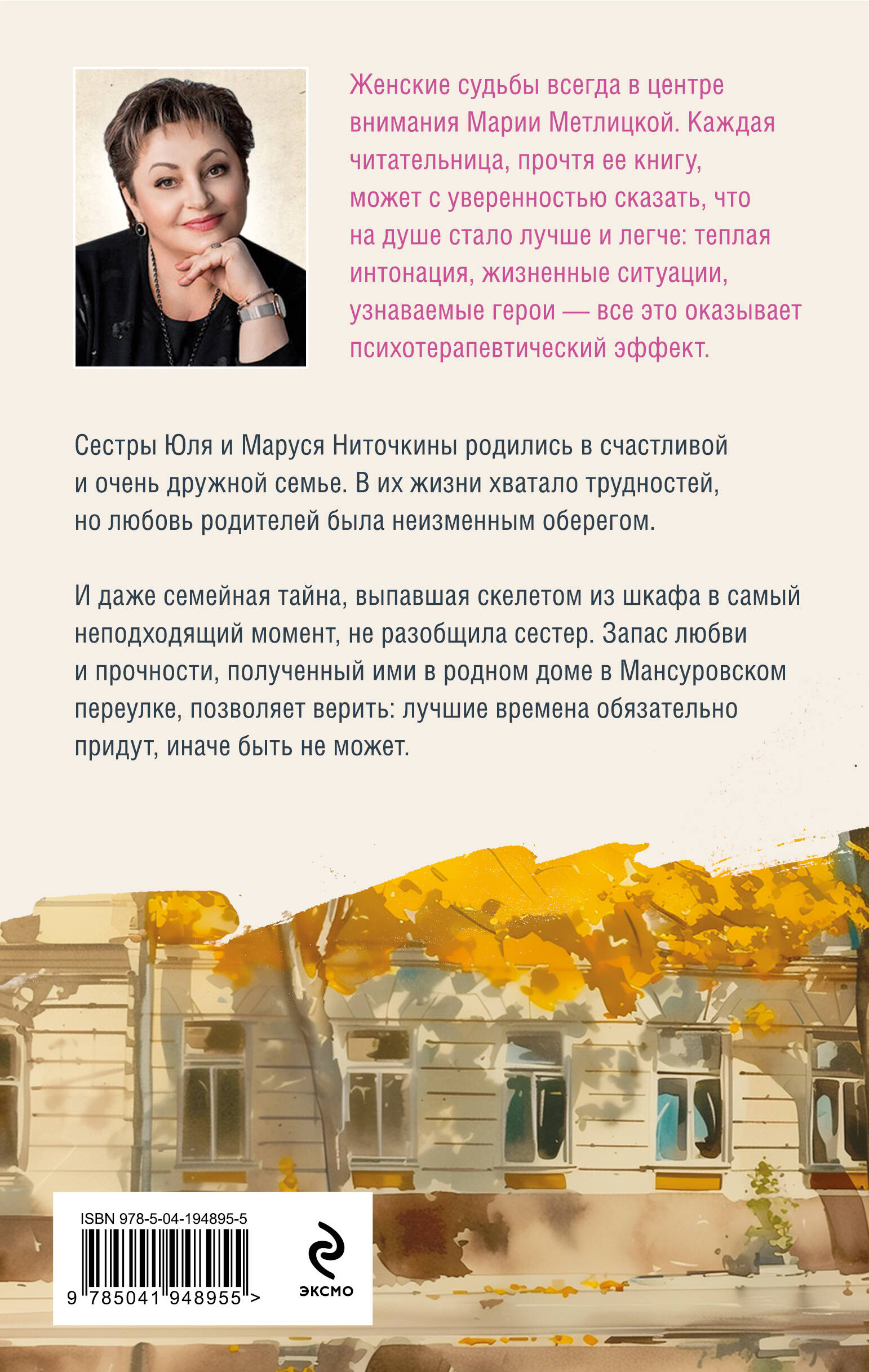 Женские судьбы всегда в центре внимания Марии Метлицкой. Каждая читательница, прочтя ее книгу, может с уверенностью сказать, что на душе стало лучше и легче: теплая интонация, жизненные ситуации, узнаваемые герои — все это оказывает психотерапевтический эффект.