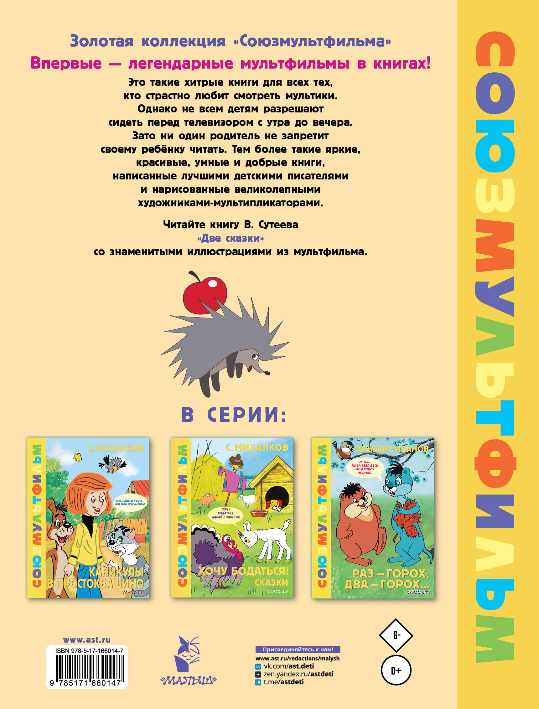 Когда-то Владимир Сутеев написал сказки «Яблоко» и «Палочка-выручалочка». В 1962 году по ним сняли мультфильм, который так и назвали: «Две сказки». В них добрые зверята приходят друг другу на помощь и наглядно показывают, что добрые дела и справедливость всегда торжествуют. В нашу книгу вошли «Две сказки» с кадрами из того самого мультфильма.