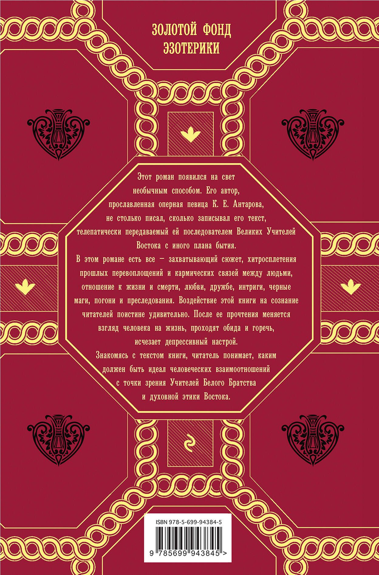 Роман появился на свет необычным способом. Его автор, прославленная оперная певица К.Е. Антарова, не столько писала, сколько записывала его текст, телепатически передаваемый ей последователем Великих Учителей Востока с иного плана бытия. Воздействие этой книги на сознание читателей поистине удивительно. После ее прочтения меняется взгляд человека на жизнь и людей, проходят обида и горечь, исчезает депрессивный настрой. Это книга реально помогает жить в нашем сложном мире, она врачует душу и возвышает сознание людей, потому что в ней изложены основы великого знания — древней мудрости Востока. Знакомясь с текстом книги, читатель понимает, каким должен быть идеал человеческих взаимоотношений с точки зрения Учителей Белого Братства и духовной этики Востока.