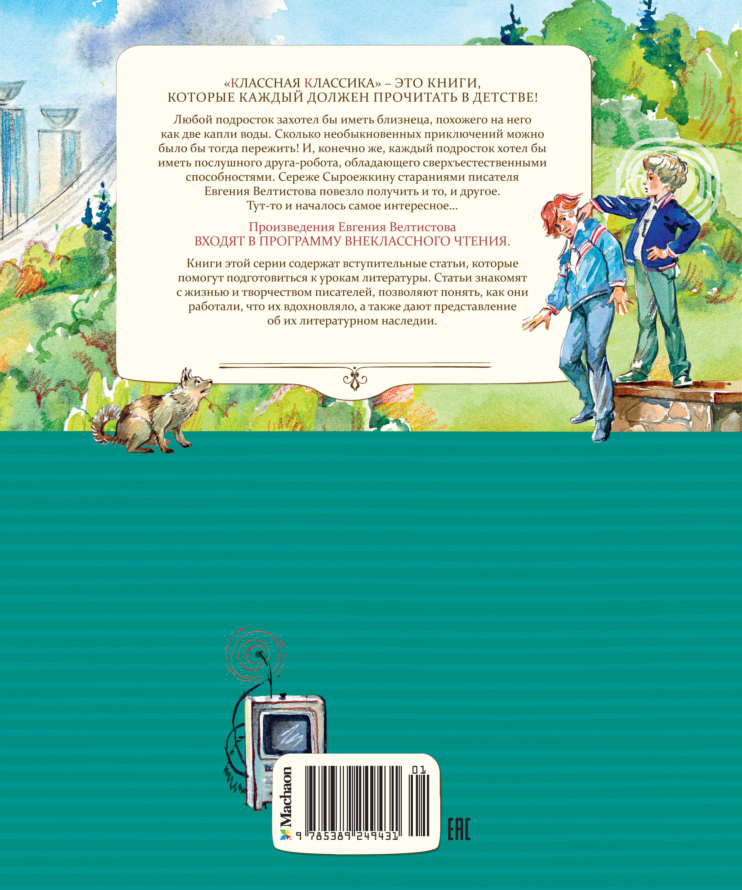Любой подросток хотел бы иметь близнеца, похожего на него как две капли воды. Сколько невероятных приключений можно было бы тогда пережить! И конечно же каждый подросток не отказался бы от послушного друга робота, обладающего сверхъестественными способностями. Главному герою этой книги, Серёже Сыроежкину, стараниями писателя Евгения Велтистова повезло получить и то и другое. Тут-то и началось самое интересное…