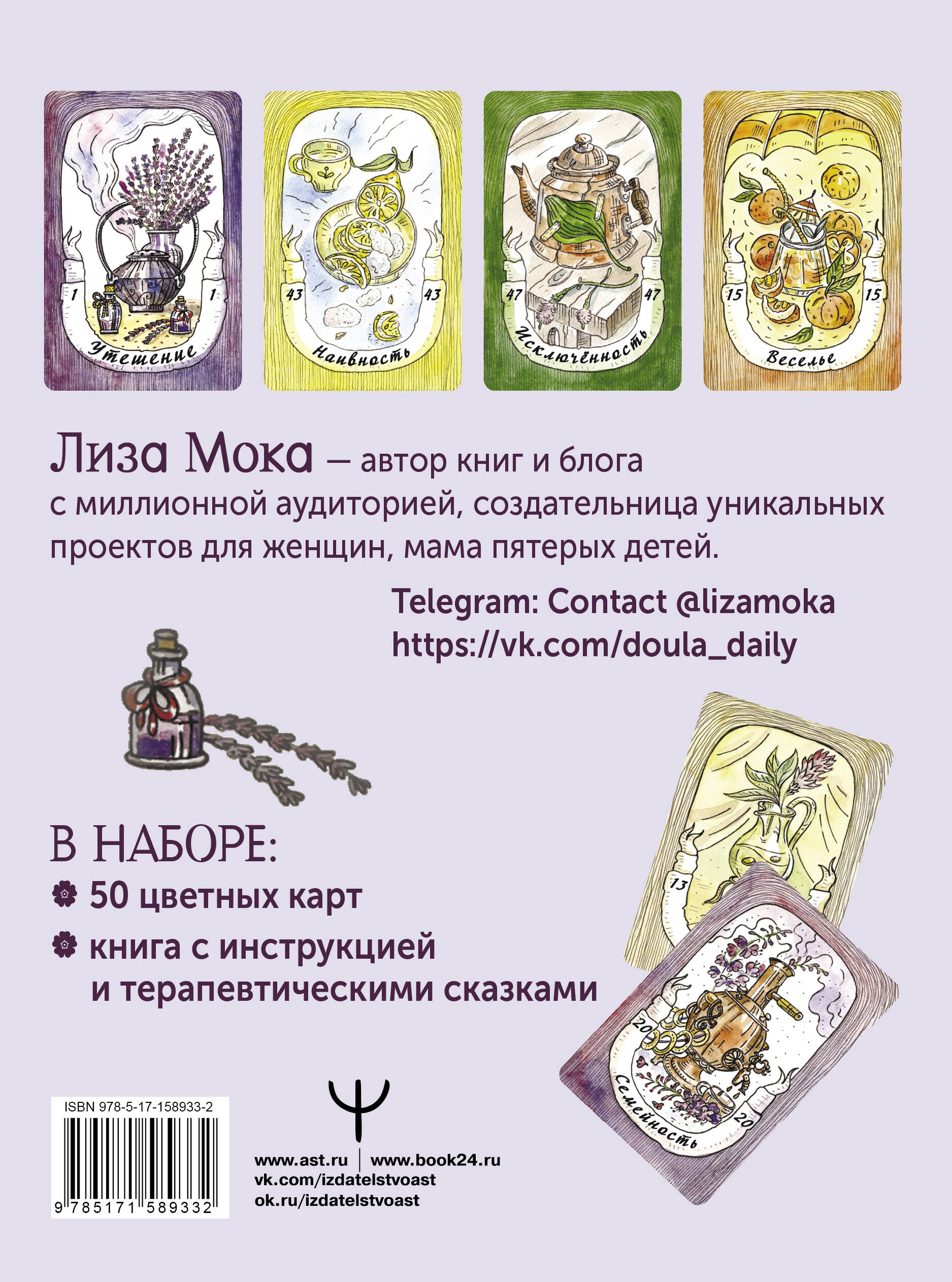 Всем нам порой хочется убежать от городской суеты, расслабиться и побыть наедине с собой. Метафорические карты «Эликсир для души» от психолога Лизы Мока станут для вас настоящим глотком свежего воздуха. Стильная колода оформлена в растительном стиле, включает нежные акварельные иллюстрации целебных растений и трав, обладающих целительными и магическими свойствами. В комплект входят 50 авторских карт в изящной подарочной коробке, а также книга терапевтических сказок для правильного истолкования карт. Работа с картами позволяет проникнуть в глубины бессознательного и найти ответы на важные вопросы о себе, проанализировать скрытые эмоции и ощутить гармонию с природой. Настоящий эликсир для души!