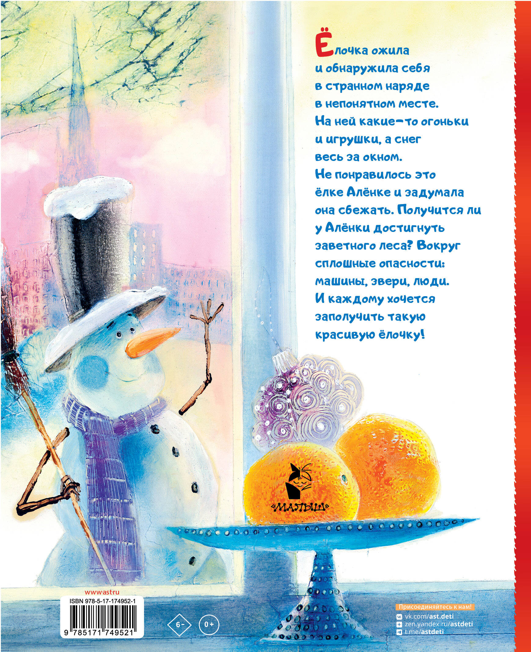 Не понравилось это ёлке Алёнке и задумала она сбежать. Получится ли у Алёнки достигнуть заветного леса? Вокруг сплошные опасности: машины, звери, люди.