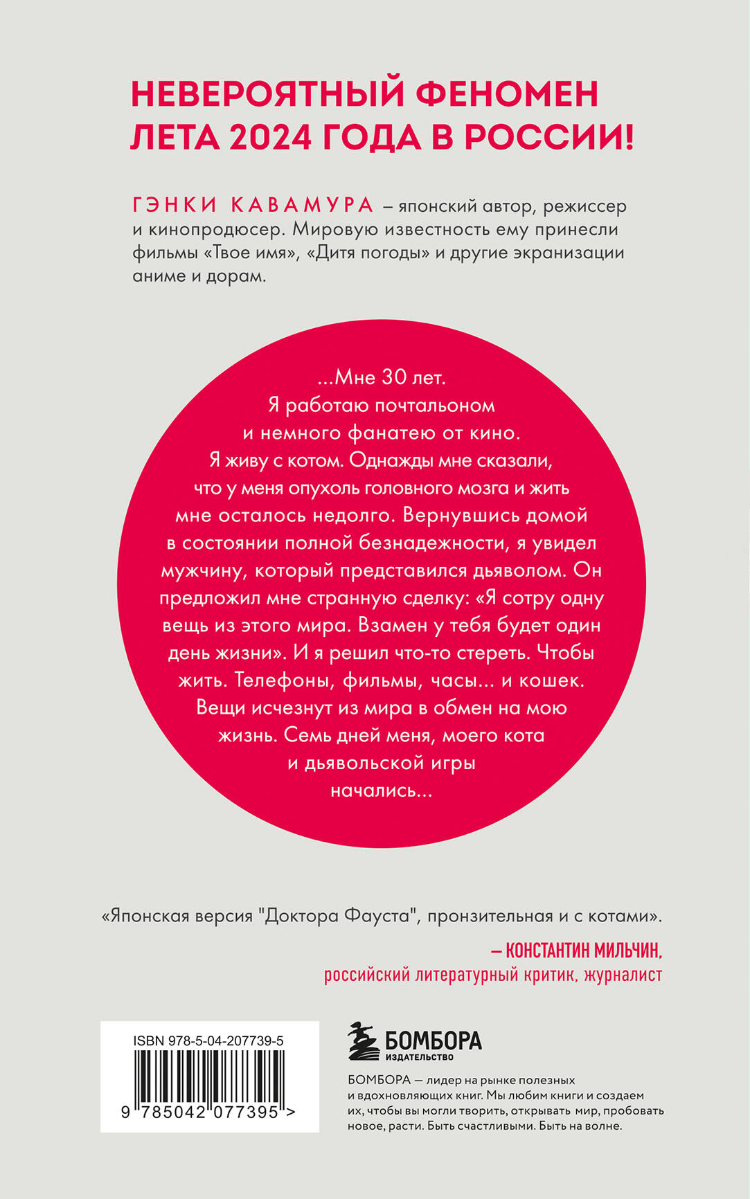 Дни молодого почтальона сочтены. Оторванный от своей семьи и живущий один, со своим котом Капустой, он не был готов к страшному диагнозу: жить ему осталось всего несколько месяцев. Но прежде чем он сможет привести свои дела в порядок, появляется дьявол с очень необычным предложением. Темная сила обещает продлить умирающему жизнь, но в обмен за каждый дополнительный день одна вещь в мире будет исчезать бесследно... И вот начинается очень странная неделя, которая ставит молодого почтальона и его любимого кота на грань существования.