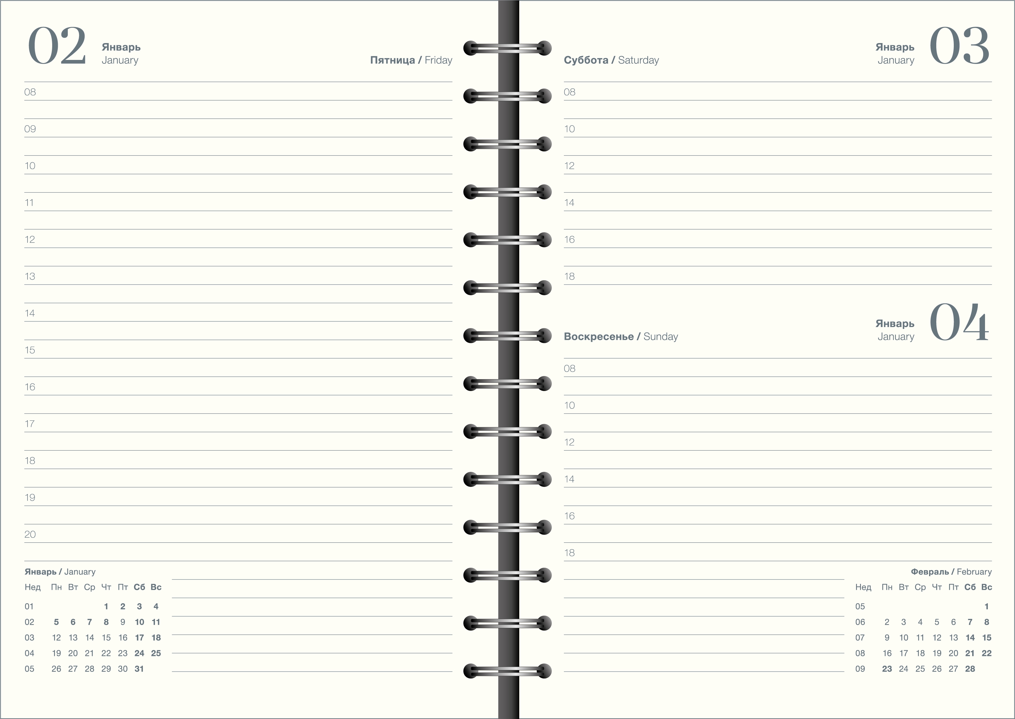 Обложка - мягкая, полускрытая спираль, гладкая искусственная кожа с печатью по материалу и шелкографией, цвет - цветок. Блок - датированный, 320 стр., скругленные уголки, бумага: слоновая кость, прямые уголки, 70 г/м2.
