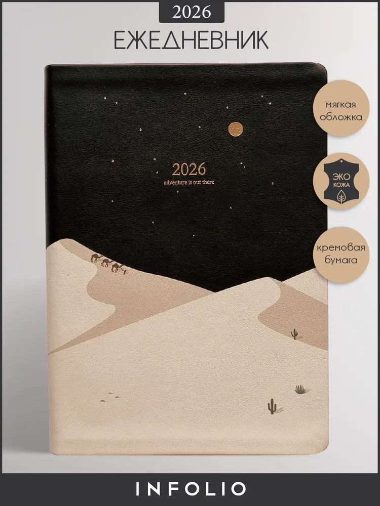 Оригинальный ежедневник на 2026 год от Infolio А5 формата (140х200 мм) - это идеальный помощник для всех, кто ценит организацию и планирование и хочет подчеркнуть свой стиль. С его помощью легко держать перед глазами все дела, задачи, важные события и вести расписание.