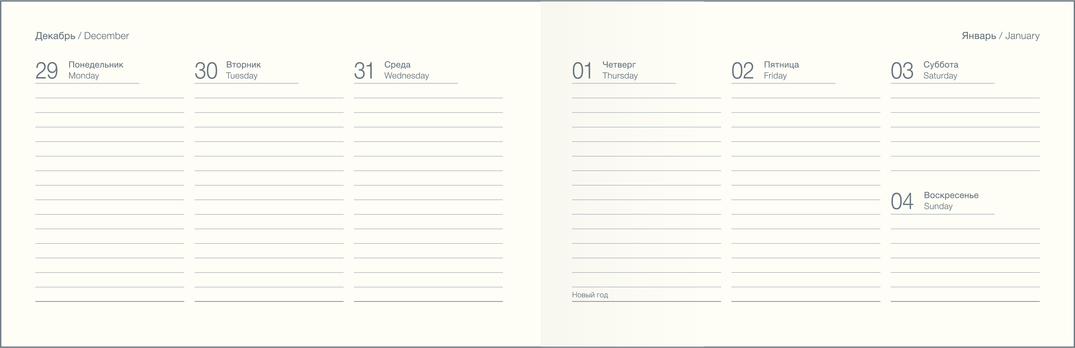 Обложка - интегральная, гладкая искусственная кожа с печатью по материалу и шелкографией, цвет - черный. Блок - датированный, 128 стр., скругленные уголки, бумага: слоновая кость, скругленные уголки, 70 г/м2. Особенности: прокрас обреза блока в цвет обложки.