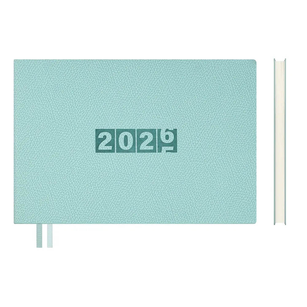 Еженедельник датированный 2026 ESCALADA, 181х127 мм, 64 л., арт. 70345/ 20 ДЖУТ МЯТНЫЙ (кожзам: мягкий переплёт, запаянный край, материал обложки: искусственная кожа "Джут", декор: блинтовое тиснение, способ крепления блока: ниткошвейный, вн. блок: 64 л., кремовый офсет 70 г/м?, печать в две краски (линия), справочный материал: есть, перфорация углов блока: нет, закладка/-и: два ляссе, каптал: есть, форзац: печать пантоном, персонализация возможна: да, индивидуальная упаковка: ПЭТ-пакет)