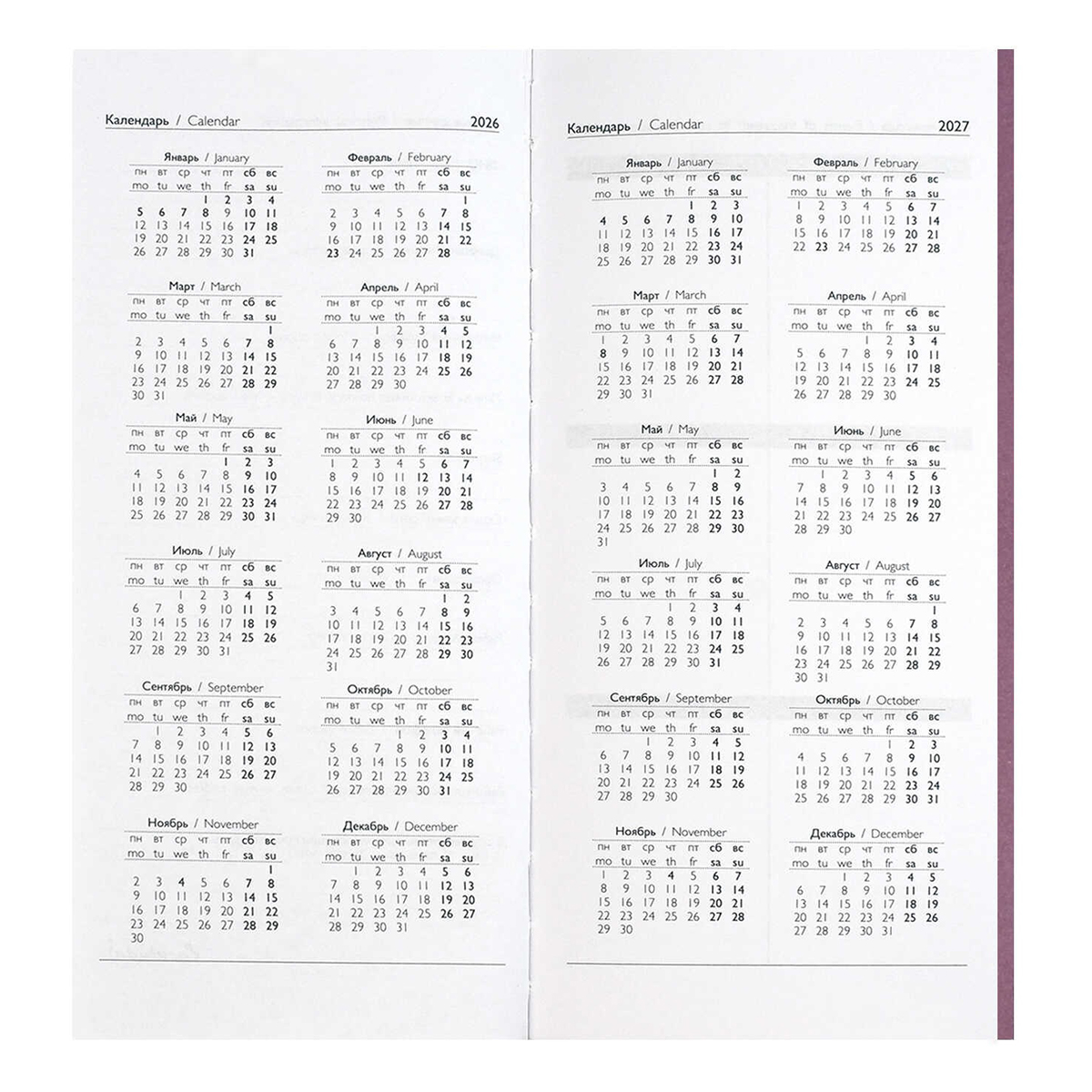 Escalada 2026 Еженедельник датированный, размер 80х165 мм, мягкий переплет, блинтовое тиснение, пант