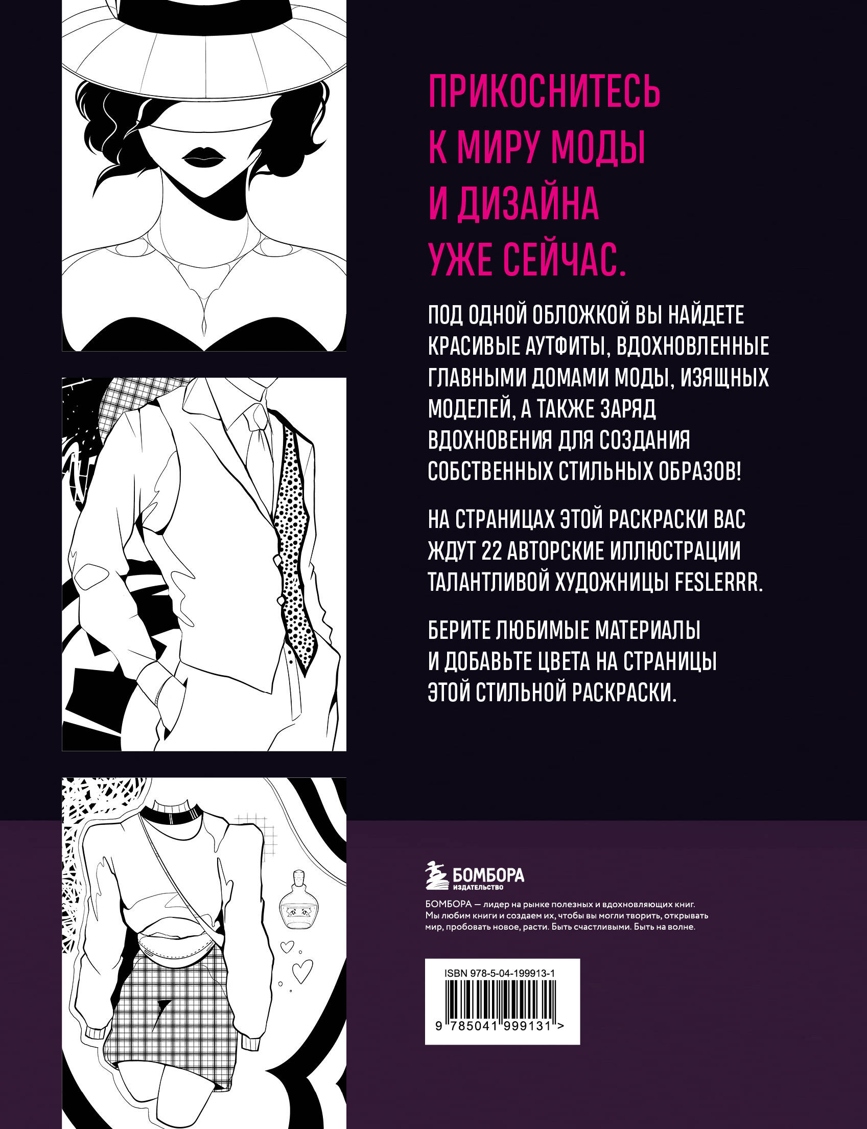 На страницах этой раскраски-антистресс вас ждут 22 авторские иллюстрации от талантливой художницы feslerrr. Потрясающие наряды, вдохновленные главными домами моды, фигуры изящных моделей, а также заряд вдохновения для создания собственных стильных образов — все это и не только ждет вас под одной обложкой!