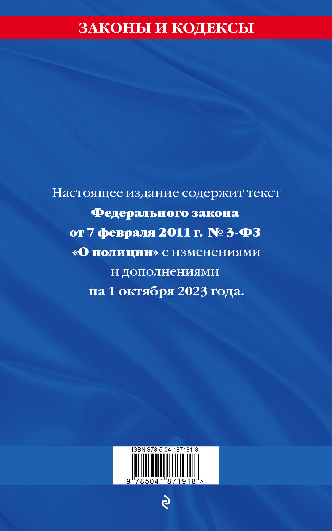 Настоящее издание содержит текст Федерального закона «О полиции» с изменениями и дополнениями на 1 октября 2023.