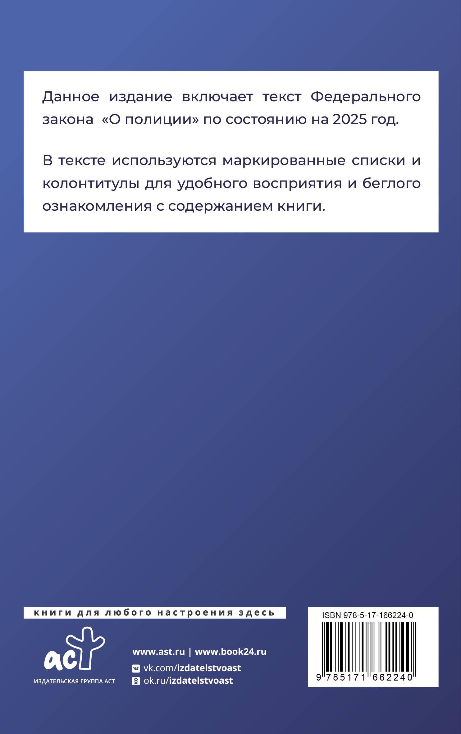 Данное издание включает текст Федерального закона "О полиции" на 2025 год.