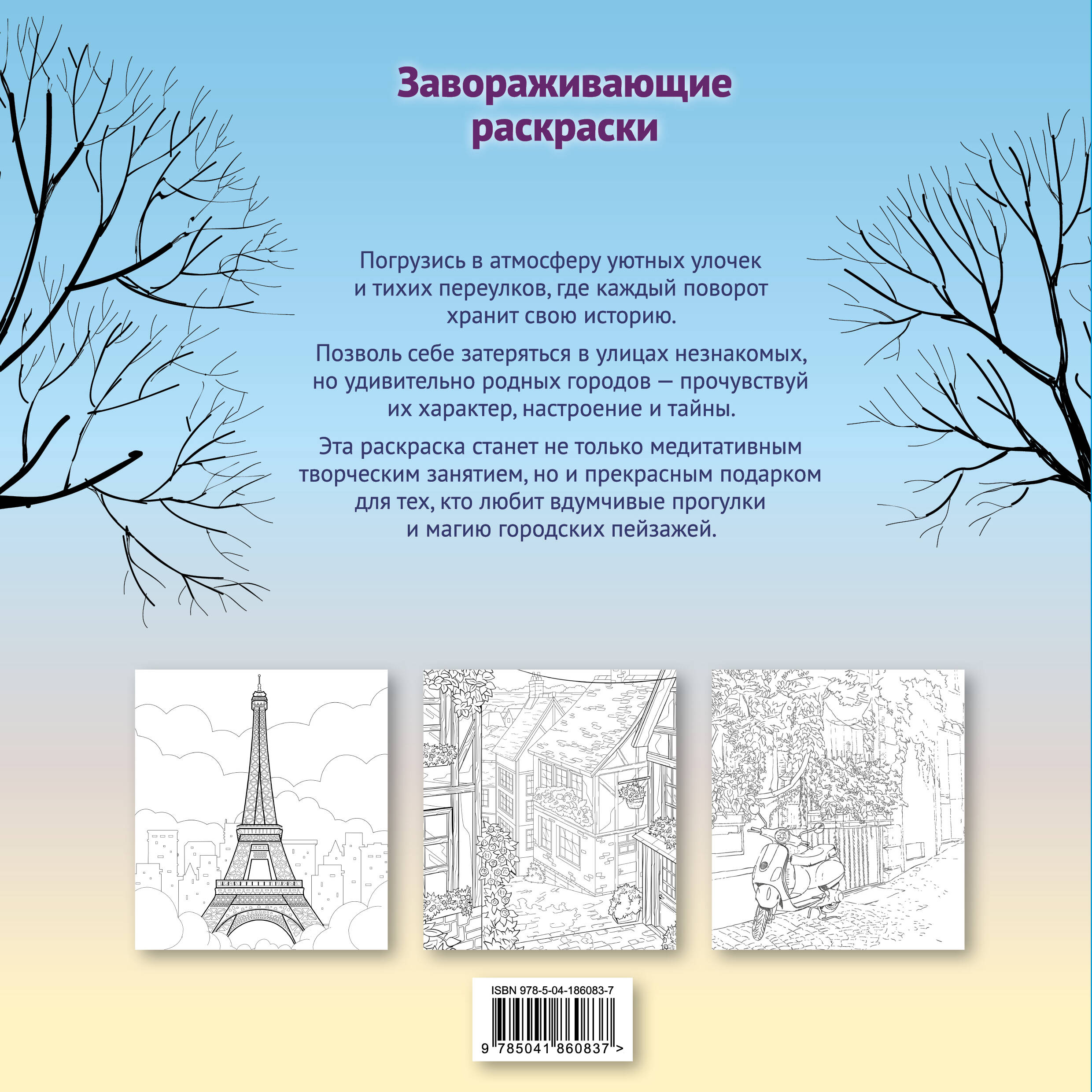 Насладитесь атмосферой уютных улочек и переулков, проникнетесь желанием затеряться в переулках незнакомых, но как будто близких каждому городов, познакомиться с ними и прочувствовать дух городов, которые хранят свои тайны. Они точно не оставят вас равнодушными! Все иллюстрации односторонние, поэтому раскрашивать их можно, не боясь испортить рисунок на обороте. Раскраска также может стать отличным подарком любителям долгих вдумчивых прогулок.