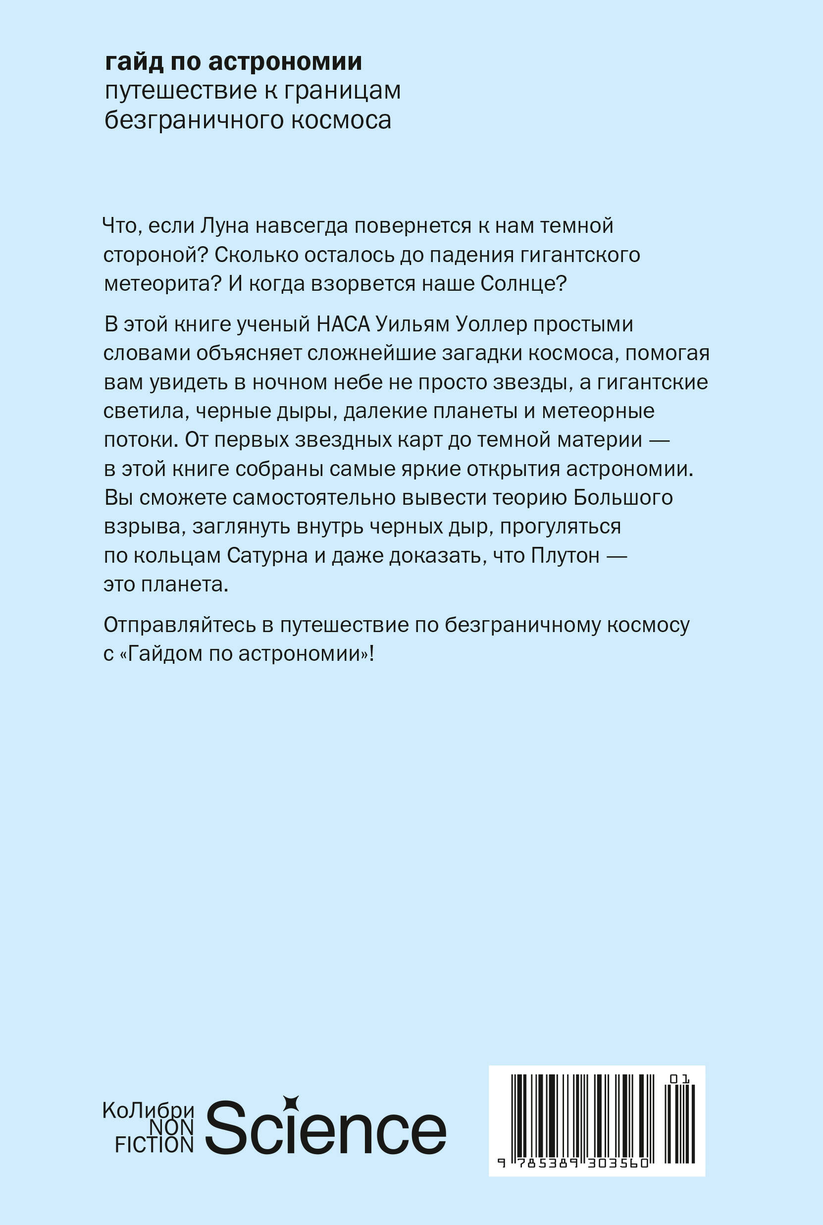 В этой книге ученый НАСА Уильям Уоллер простыми словами объясняет сложнейшие загадки космоса, помогая вам увидеть в ночном небе не просто звезды, а гигантские светила, черные дыры, далекие планеты и метеорные потоки. От первых звездных карт до темной материи — в этой книге собраны самые яркие открытия астрономии. Вы сможете самостоятельно вывести теорию Большого взрыва, заглянуть внутрь черных дыр, прогуляться по кольцам Сатурна и даже доказать, что Плутон — это планета.