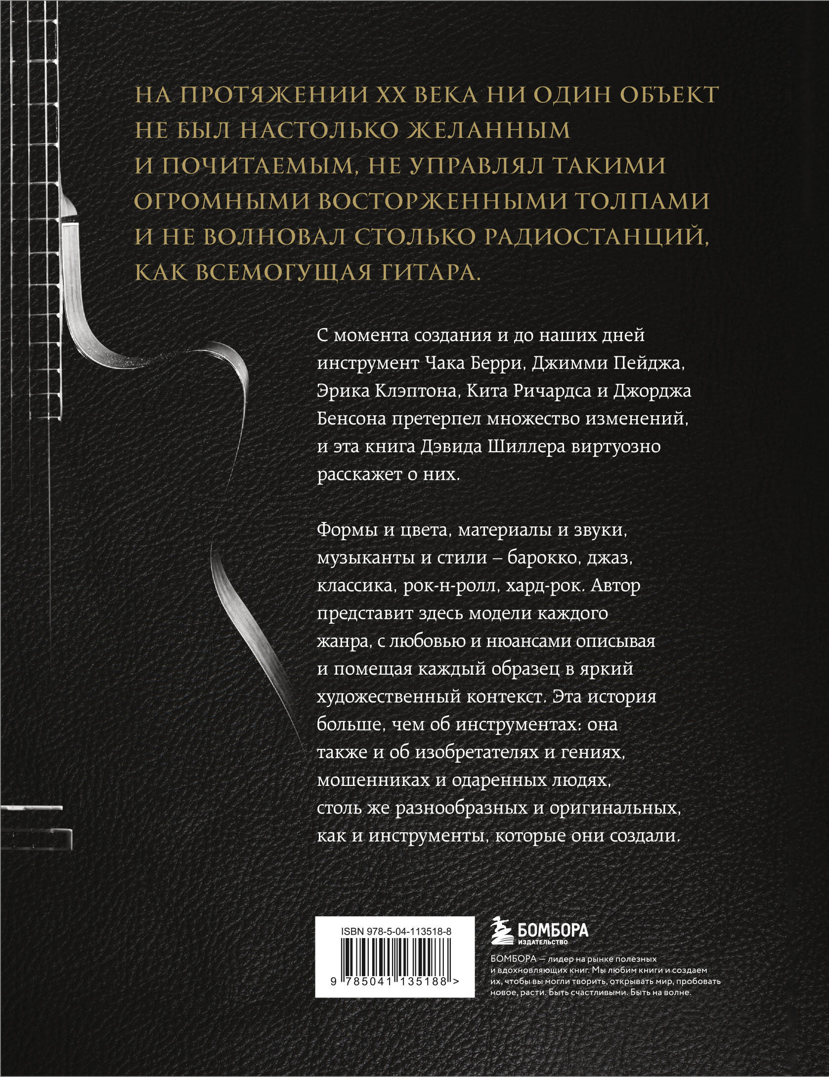Эта книга Дэвида Шиллера наполнена прекрасными фотографиями легендарных и единственных в своем роде музыкальных памятников, обзорами редких находок и красивых уникальных экземпляров гитар. Книга должна стать частью коллекции любого ценителя гитары или же украсить библиотеку или журнальный столик.
