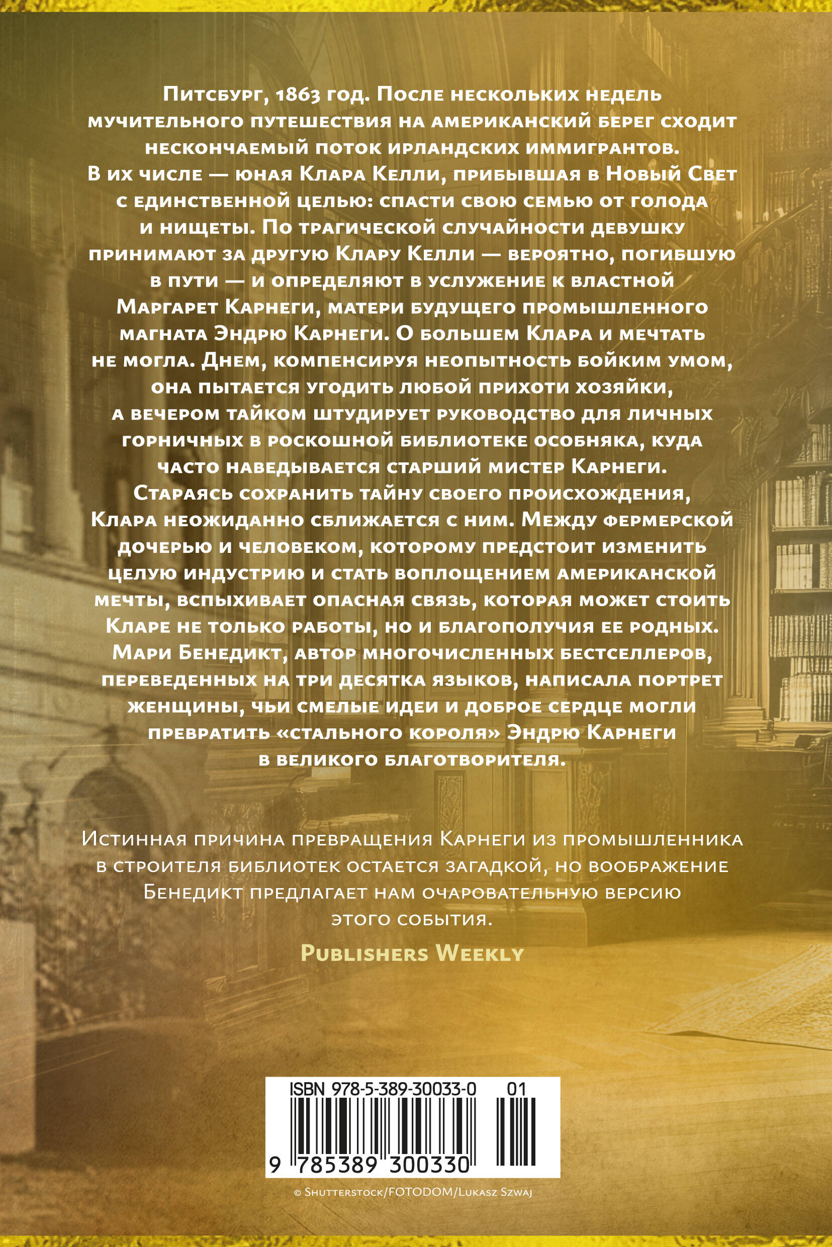 От автора бестселлеров The New York Times Мари Бенедикт — роман о девушке, чья жизнь оказалась тесно связана с судьбой стального магната, определившего экономическое лицо Америки. Возможно, именно она подтолкнула Эндрю Карнеги к превращению из безжалостного промышленника в настоящего филантропа.