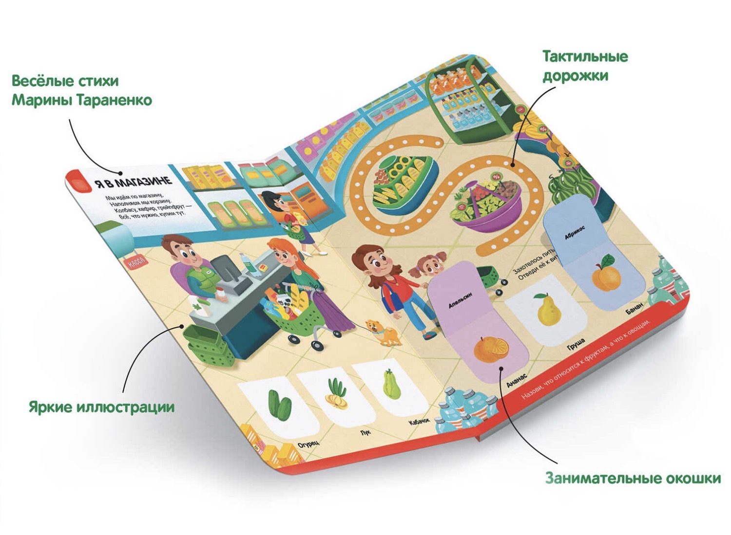 Книги из серии «Играй и учись» от торговой марки Malamalama станут лучшими друзьями малыша и помогут ему учиться и узнавать новое с удовольствием! Окошки с фактами, забавные стишки, тактильные дорожки и объёмные иллюстрации приятно разнообразят чтение. Вместе с книгой «Город» ваш малыш сможет узнать, где мама покупает продукты, куда ведёт дорога, кто живёт в зоопарке и многое другое о жизни города, потренировать мелкую моторику, память и фантазию. Открывайте книги серии «Играй и учись» — получайте знания и заряд положительных эмоций!
