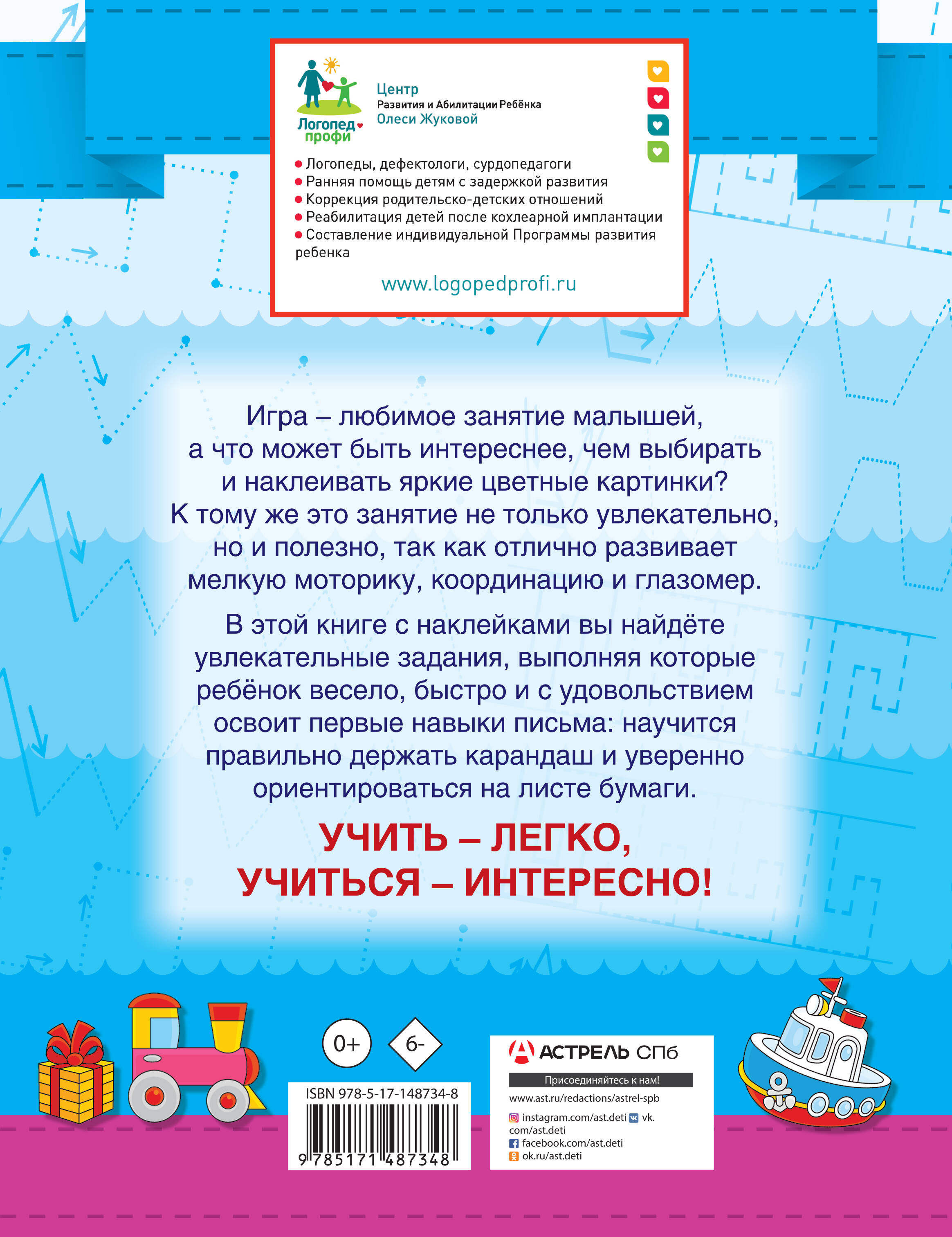 Игра – любимое занятие малышей, а что может быть интереснее, чем выбирать и наклеивать яркие цветные картинки? К тому же это занятие не только увлекательно, но и полезно, так как отлично развивает мелкую моторику, координацию и глазомер. В этой книге с наклейками вы найдёте увлекательные задания, выполняя которые ребёнок весело, быстро и с удовольствием освоит первые навыки письма: научится правильно держать карандаш и уверенно ориентироваться на листе бумаги.
