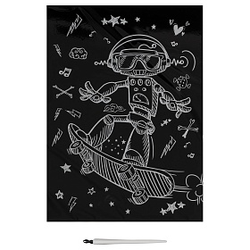 Гравюра Робот на скейте мультицвет