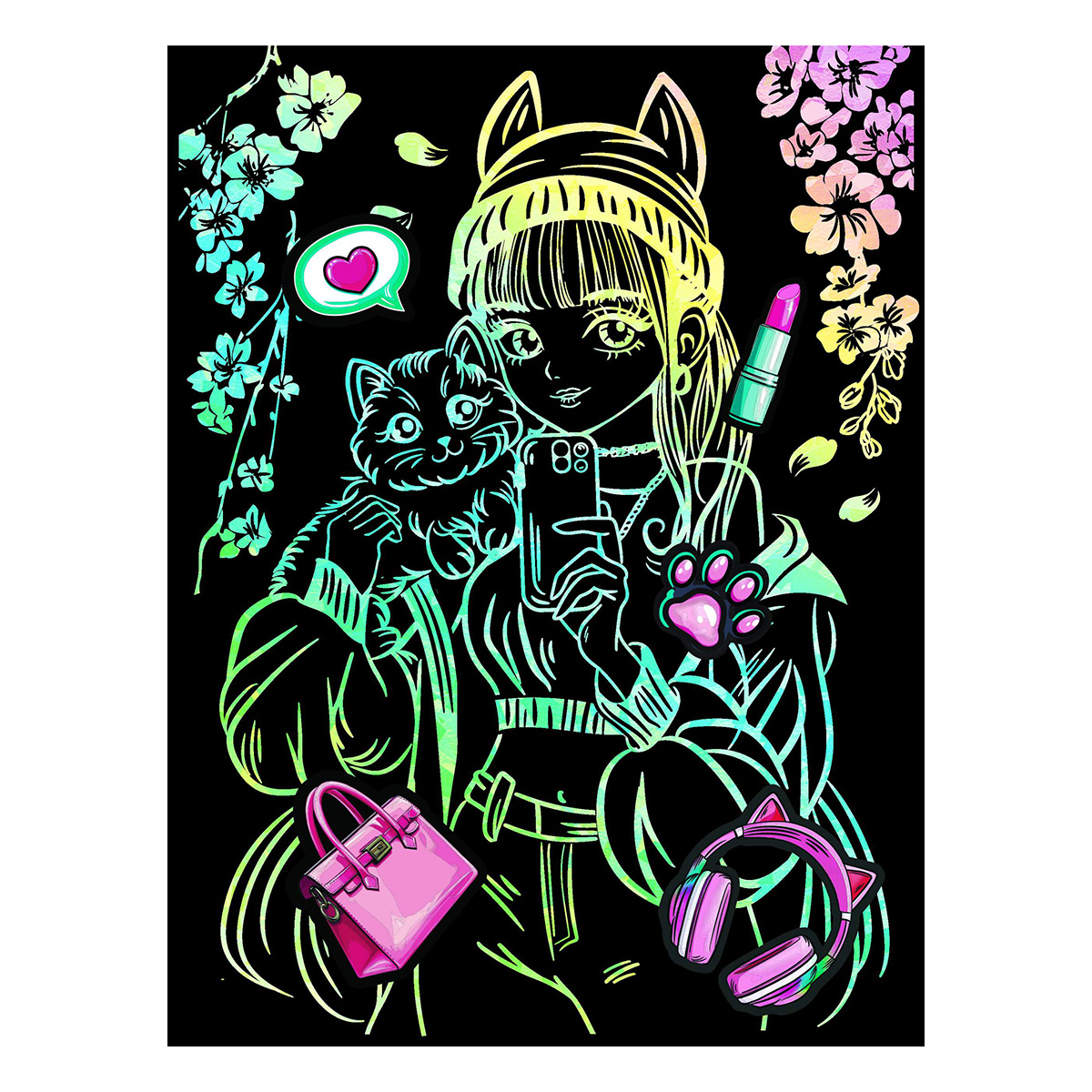 Гравюра Селфи с котом гологр