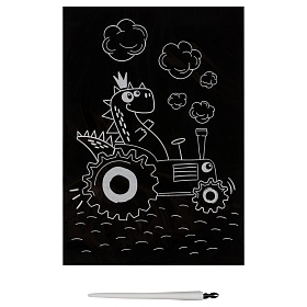 Состав набора: основа формата А5 (14,8*21 см) из картона, штихель, крепление на стену. Гравюра понравится мальчикам. Работа над гравюрой развивает не только внимательность, но и мелкую моторику рук, что способствует формированию красивого почерка. Создавая гравюру, ребенок может добавлять на картинку новые элементы, штрихи и линии, не ограничивая свою фантазию и изобретая собственные сюжеты. Завершенная работа станет замечательным украшением интерьера или отличным подарком кому-то из близких. Набор упакован в картонный конверт с европодвесом.