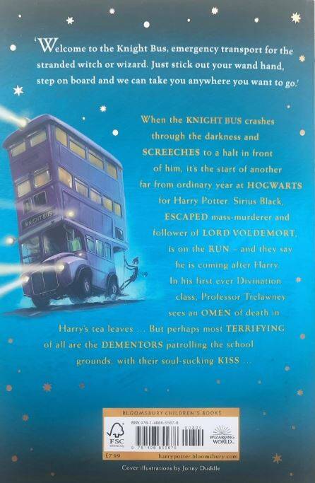 When the Knight Bus crashes through the darkness and screeches to a halt in front of him, it’s the start of another far from ordinary year at Hogwarts for Harry Potter. Sirius Black, escaped mass-murderer and follower of Lord Voldemort, is on the run – and they say he is coming after Harry. In his first ever Divination class, Professor Trelawney sees an omen of death in Harry’s tea leaves … But perhaps most terrifying of all are the Dementors patrolling the school grounds, with their soul-sucking kiss.