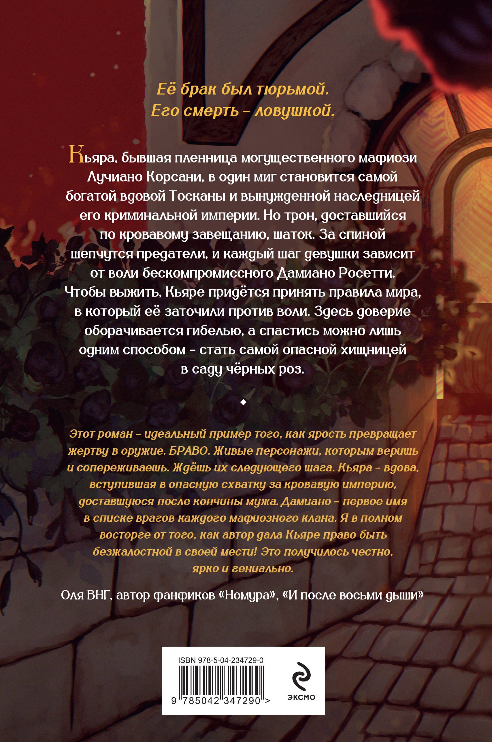 Кьяра, бывшая пленница могущественного мафиози Лучиано Корсани, в один миг становится самой богатой вдовой Тосканы и вынужденной наследницей его криминальной империи. Но трон, доставшийся по кровавому завещанию, шаток. За спиной шепчутся предатели, и каждый шаг девушки зависит от воли бескомпромиссного Дамиано Росетти. Чтобы выжить, Кьяре придется принять правила мира, в который ее заточили против воли. Здесь доверие оборачивается гибелью, а спастись можно лишь одним способом — стать самой опасной хищницей в саду черных роз.