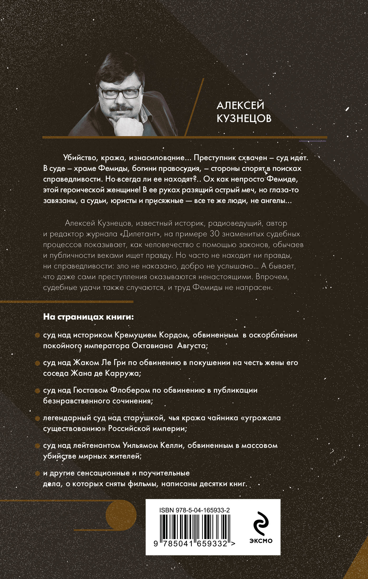 Алексей Кузнецов, известный историк, радиоведущий, автор и редактор журнала «Дилетант», на примере 30 знаменитых судебных процессов показывает, как человечество с помощью законов, обычаев и публичности веками ищет правду. Но часто не находит ни правды, ни справедливости: зло не наказано, добро не услышано… А, бывает, что даже сами преступления оказываются ненастоящими. Впрочем, судебные удачи также случаются, и труд Фемиды не напрасен.