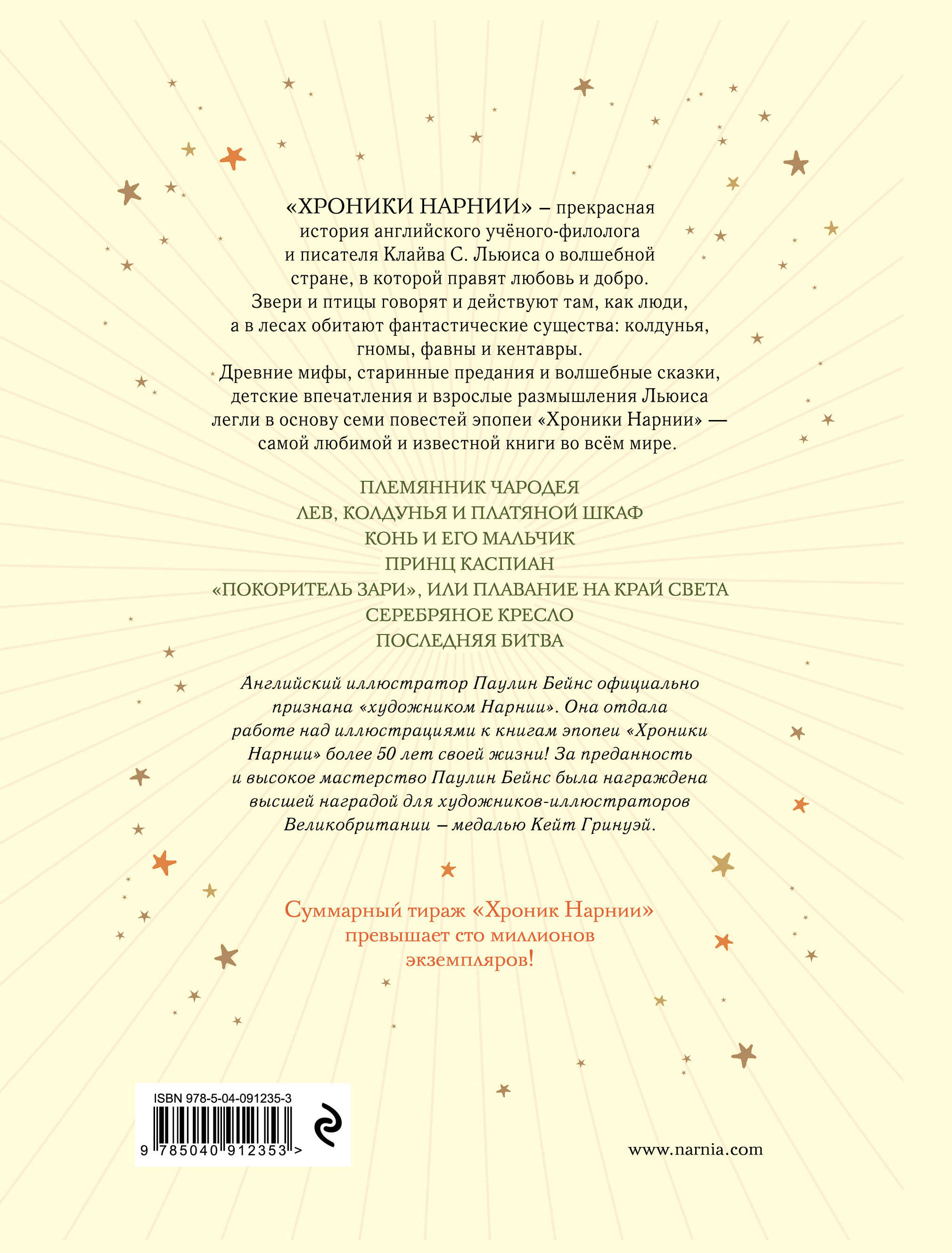 Подарочное издание знаменитой эпопеи Клайва Льюиса. Ляссе-закладка, тактильная обложка с фольгой, цветные иллюстрации Паулин Бейнс.