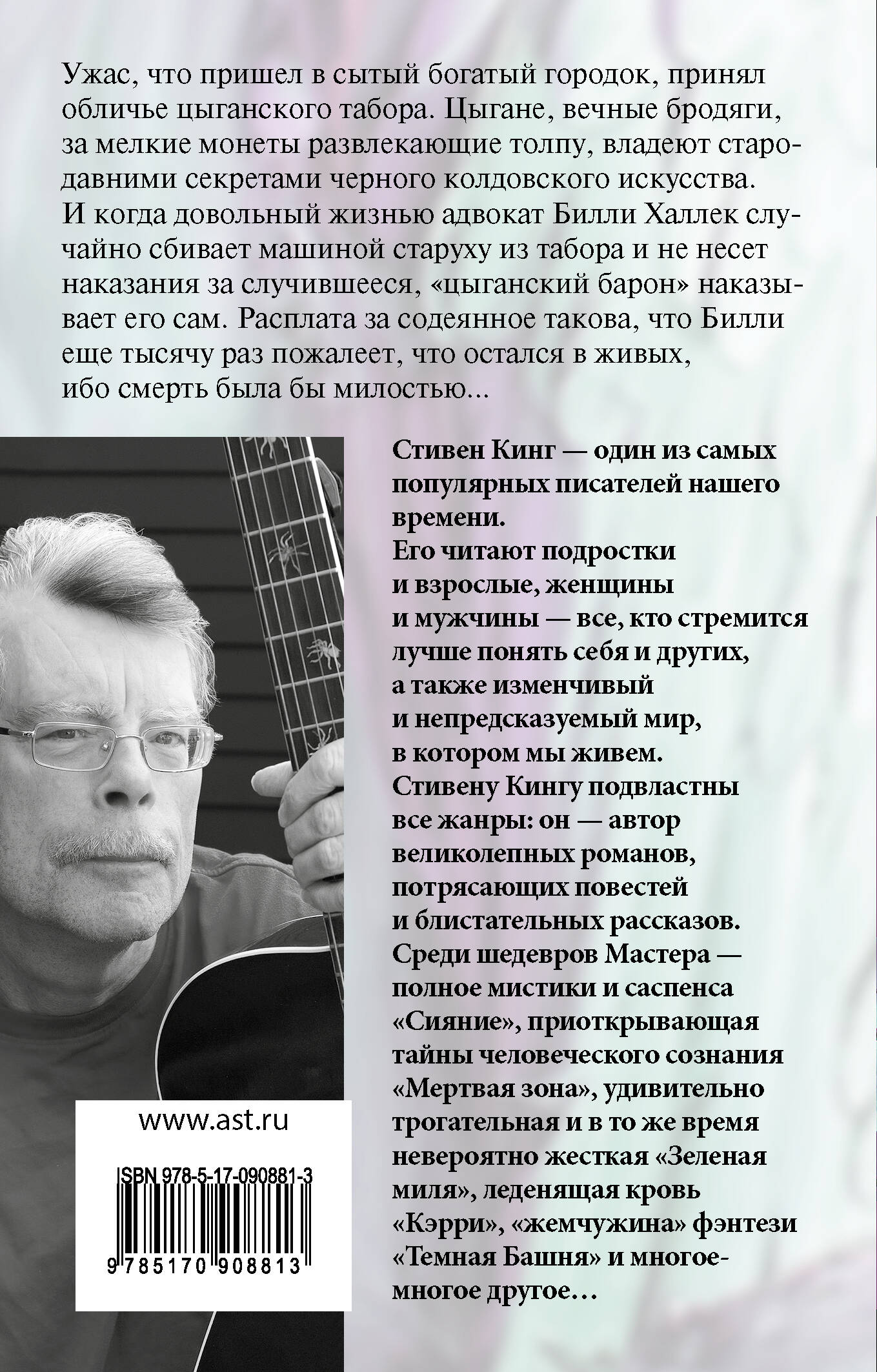 Ужас, что пришел в сытый богатый городок, принял обличье цыганского табора. Цыгане, вечные бродяги, за мелкие монеты развлекающие толпу, владеют стародавними секретами черного колдовского искусства. И когда довольный жизнью адвокат Билли Халлек случайно сбивает машиной старуху из табора и не несет наказания за случившееся, "цыганский барон" наказывает его сам. Расплата за содеянное такова, что Билли еще тысячу раз пожалеет, что остался в живых, ибо смерть была бы милостью...