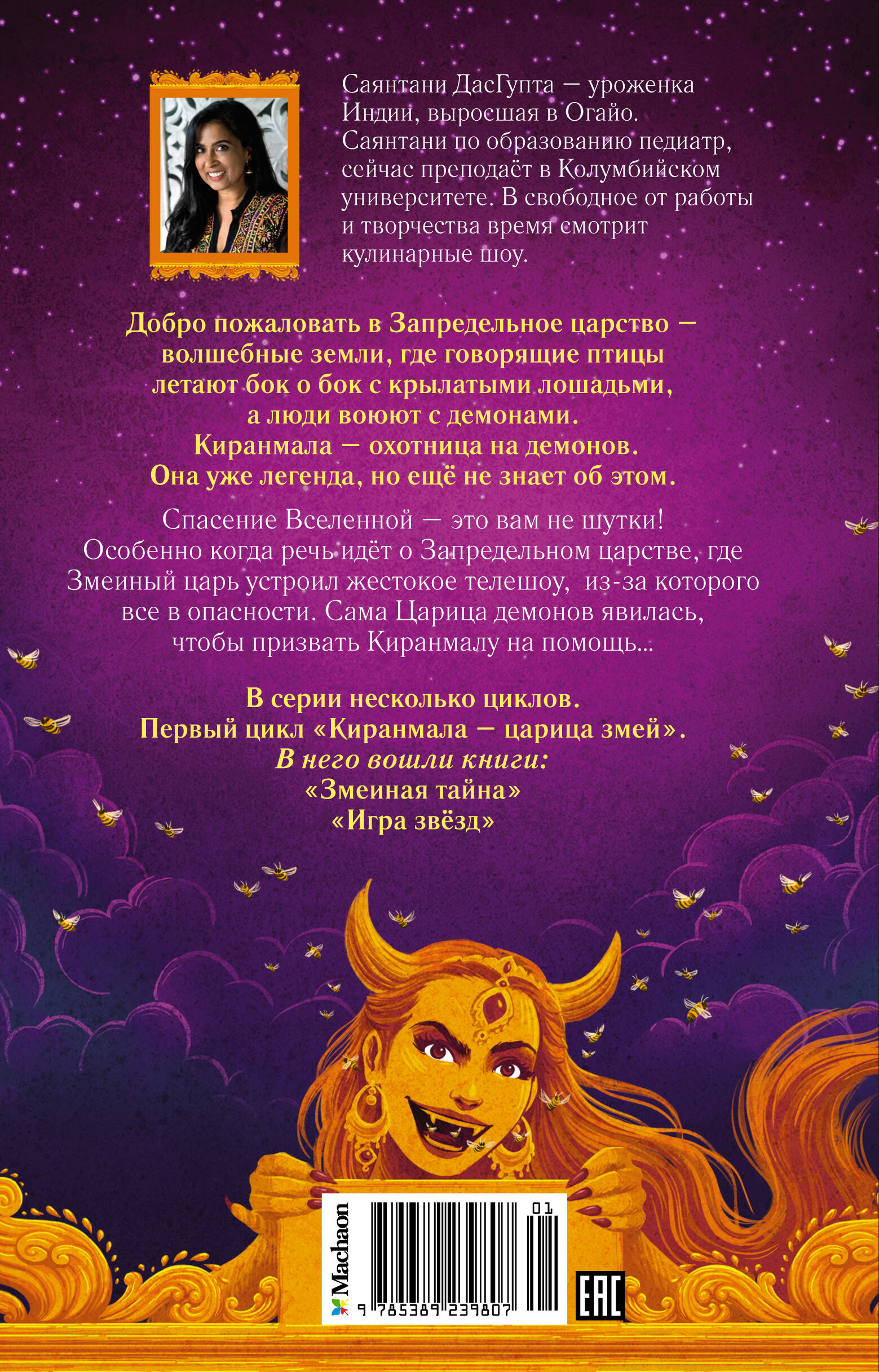 Добро пожаловать в Запредельное царство – волшебные земли, где говорящие птицы летают бок о бок с крылатыми лошадьми, а люди воюют с демонами. Киранмала – охотница на демонов. Она уже легенда, но ещё не знает об этом. Спасение Вселенной – это вам не шутки! Особенно когда речь идёт о Запредельном царстве, где Змеиный царь устроил жестокое телешоу, из-за которого все в опасности. Сама Царица демонов явилась, чтобы призвать Киранмалу на помощь…