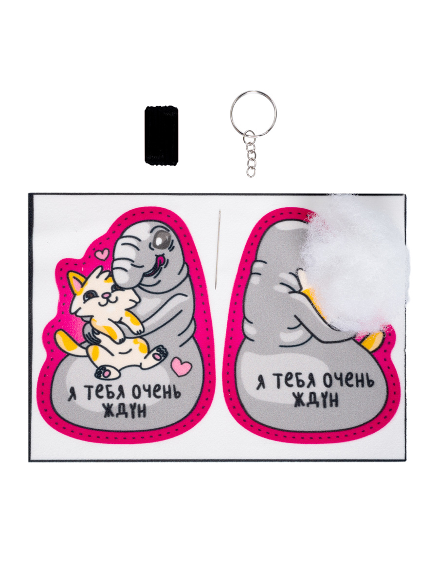 Комплектация: заготовки из ткани с напечатанным рисунком, наполнитель холлофайбер, нитки мулине, игла, металлическое кольцо для брелока