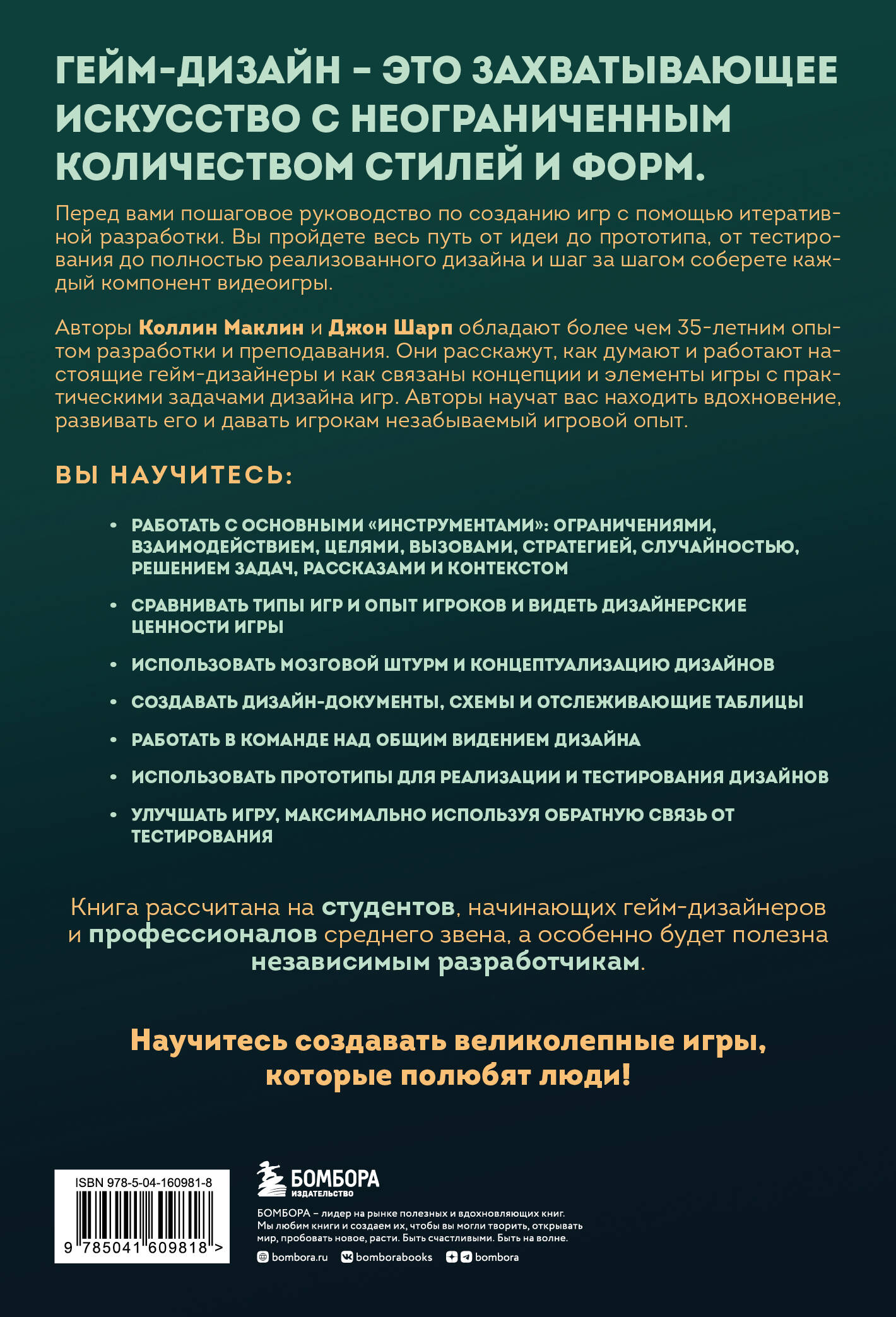 Авторы Коллин Маклин и Джон Шарп обладают более чем 35-летним опытом разработки и преподавания. Они расскажут, как думают и работают настоящие гейм-дизайнеры и как связаны концепции и элементы игры с практическими задачами дизайна игр. Авторы научат вас находить вдохновение, развивать его и давать игрокам незабываемый игровой опыт. Вы сможете создать игру почти любого вида: от кооперативной до конкурентной, от казуальной до ролевой и многое другое.